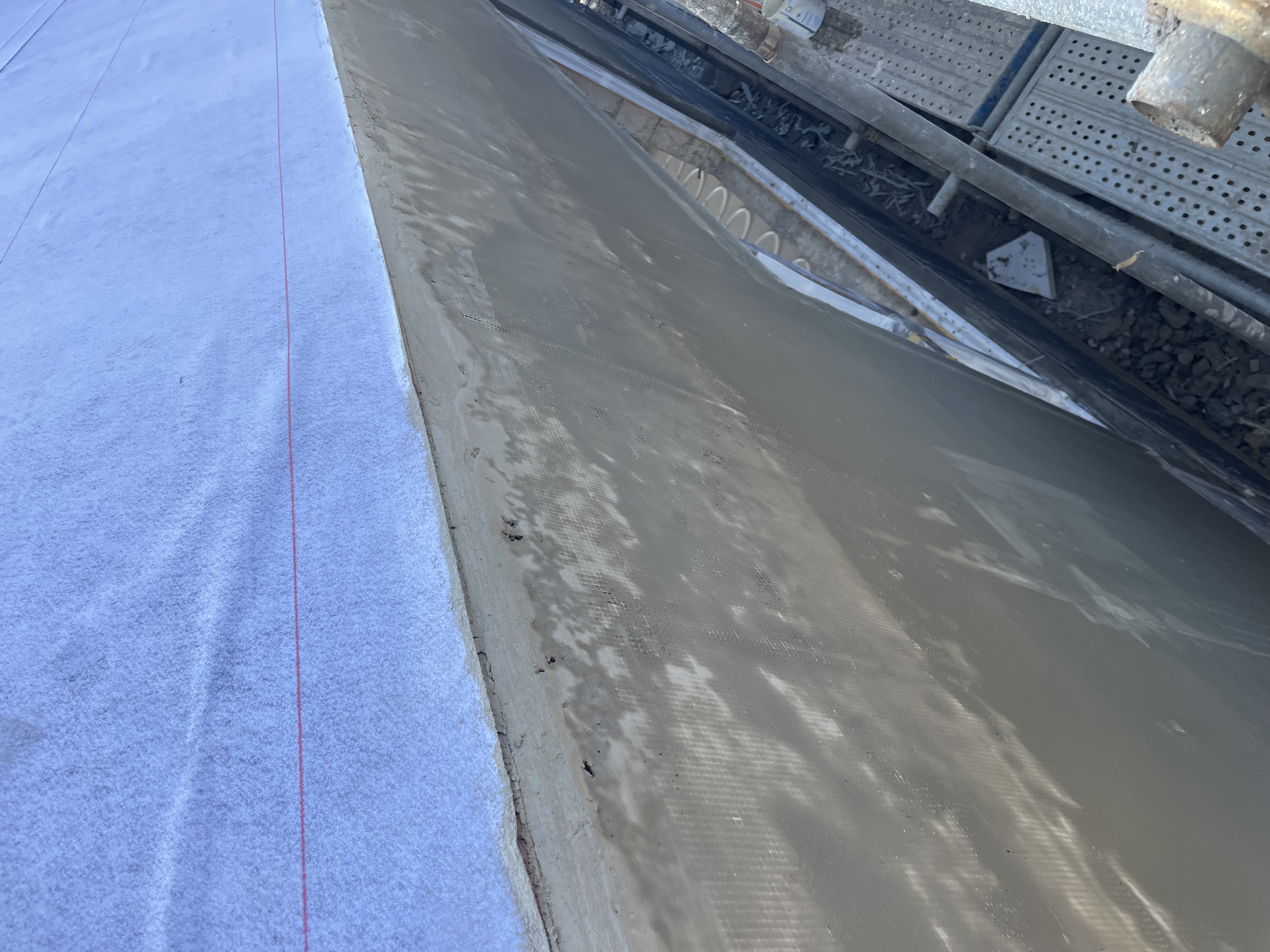 다만 방수시트 하부에 별도의 통기층을 만들지 않는 구조라면... 방수시트가 벽면을 약 50mm 라도 덮는 형식으로 하는 것이 좋습니다. 지금은 이미 늦은 상태여서, 비가 그친다음 3M 방수테잎으로 이 부분을 수평으로 쭉~ 붙여 주시는 것이 괜찮을 것 같습니다.
