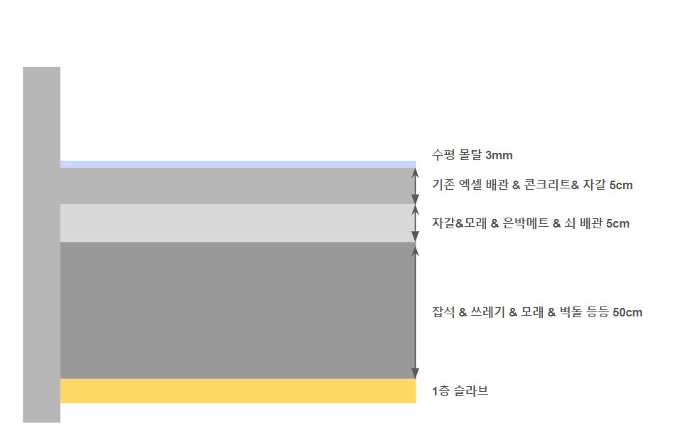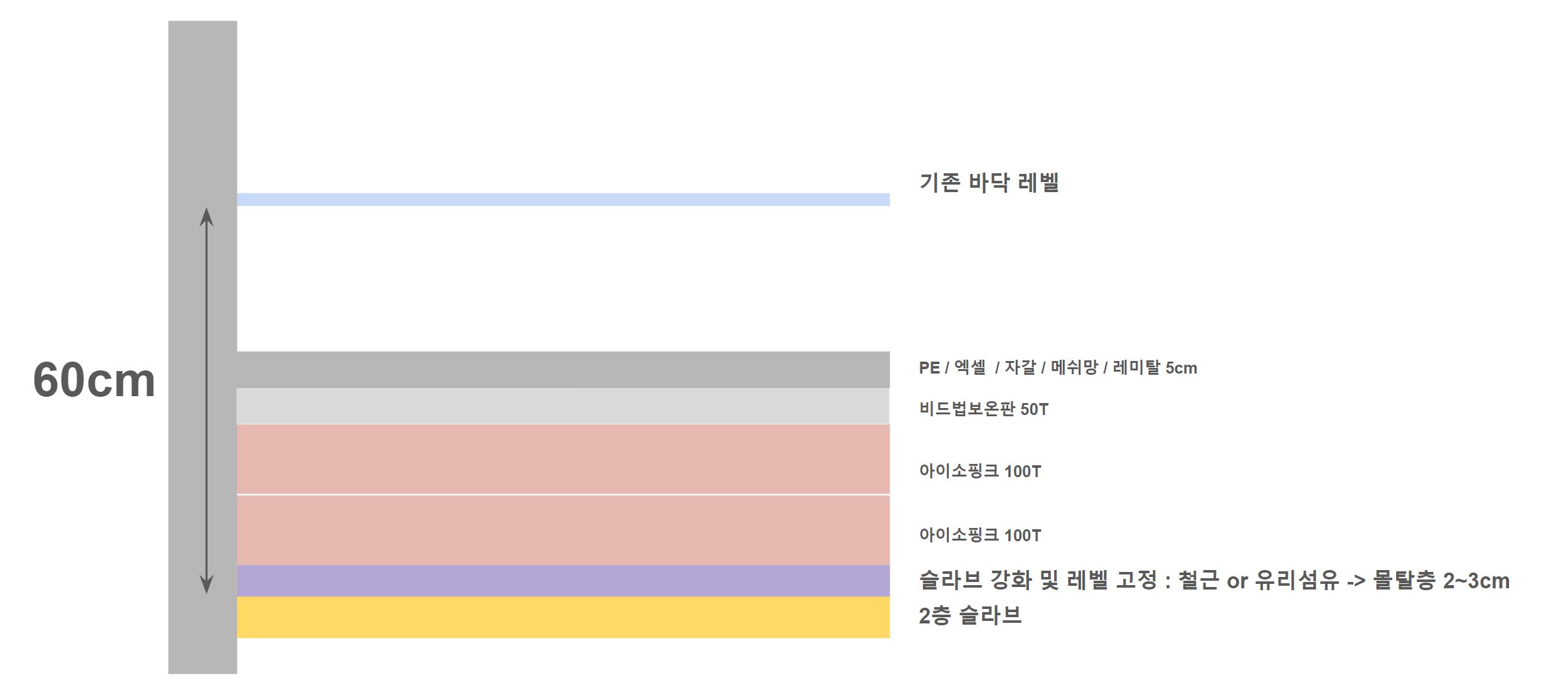 인데요. 여기서 단열재 두께를 빼더라도 거의 45cm 정도의 높이를 콘크리트로 채울 수도 채워서도 안되는데, 구성에서 제가 놓친 것이 있을까요?