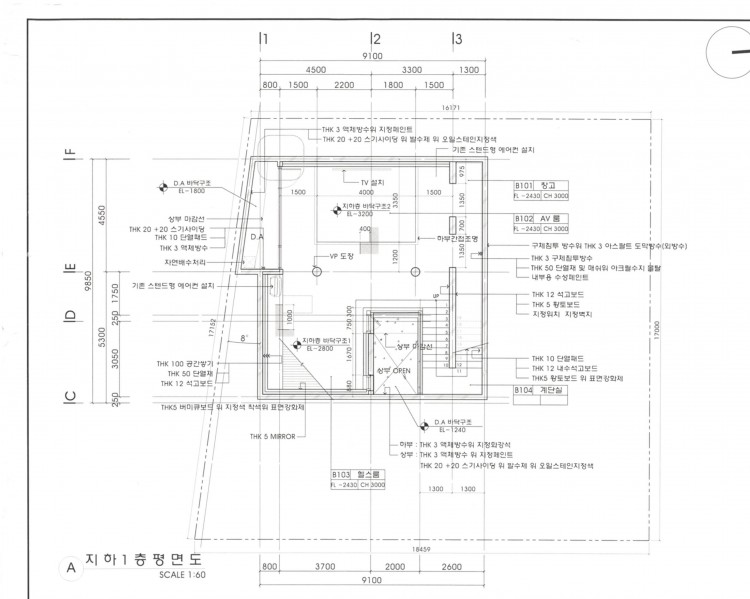 (도면상에는 바닥 배수판 + 자연배수로 되어있네요. 그런데 자연배수 장소가 지하보다 레벨이 1m가량 높습니다. 그부분은 이해가 안되네요. 아마 파봐야 알것 같습니다 )