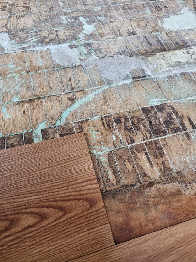 제거된 나무부분을 뭔가로 채우고 데코타일을 다시 덮을 생각입니다. 맨 처음 수평몰탈을 떠올렸는데 현재 바닥상태에 대한 의심과 실패시 원상복구의 어려움이 클 것으로 우려됩니다. 그래서 남은 장판이나 나무바닥재를 이용해 채우려고 합니다.
