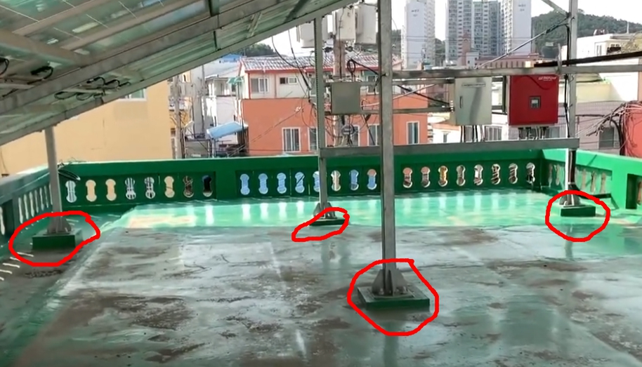 Q2) 옥상면에 방수층은 손대지 않고 콘크리트 블록 같은 것을 만들고 거기에 앙카로 고정하는 것이 유튜브 영상에 많이 보이는데…비전문가 입장에서 보면 가장 완벽해 보이나 이곳에 그런 방법에 대한 언급이 없어 의견을 구합니다.