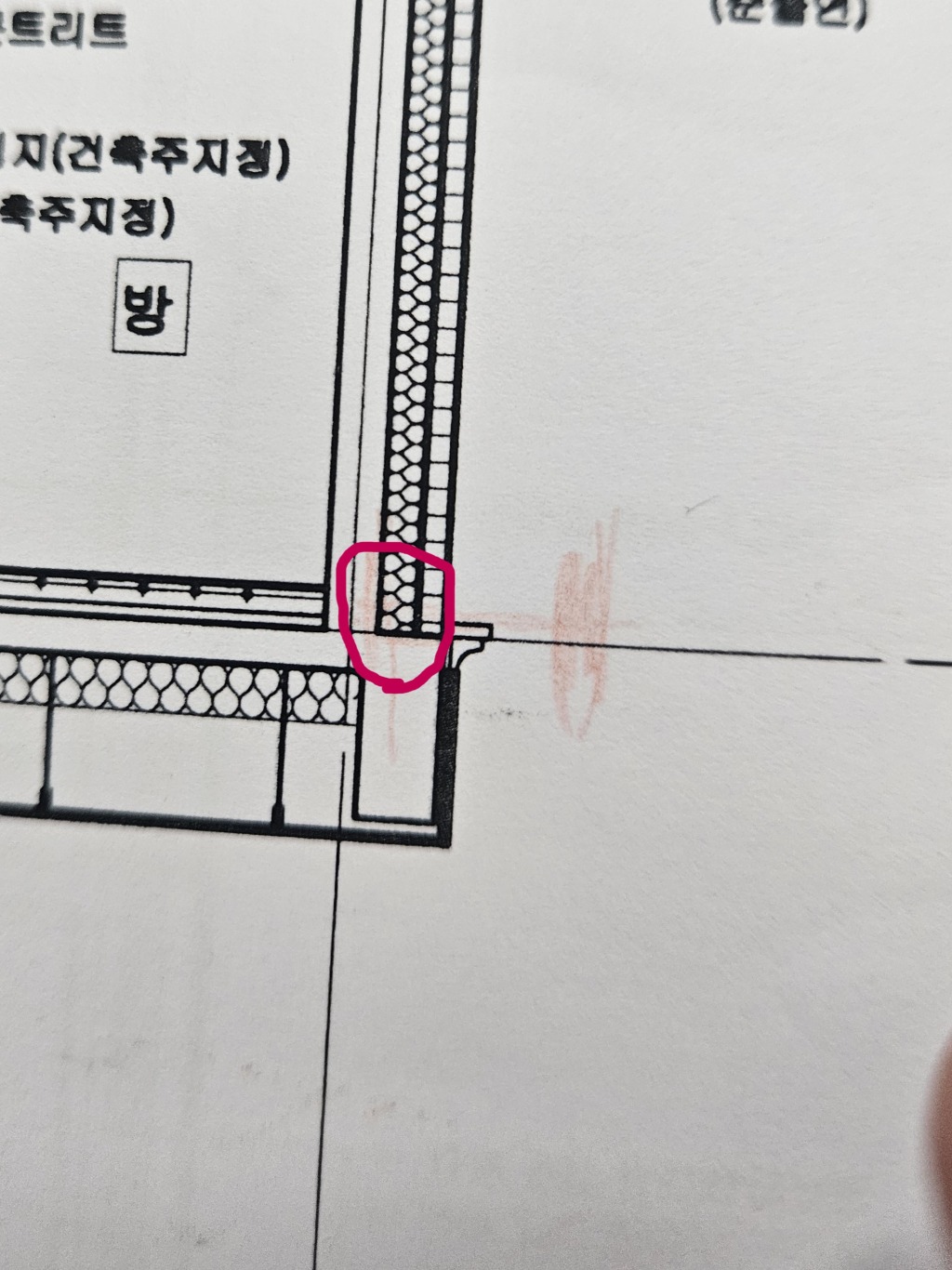 이 질문의 궁극적인 이유는 완공 1년차 건물에서 해당 사진 동그라미 부위 실내측에서 공기순환이 안되거나 방안에 빨래를 널어 습도가 높아져 외벽과 맞닿는 실내측 벽면 하단에 곰팡이가 피는 현상이 종종 나타났습니다.