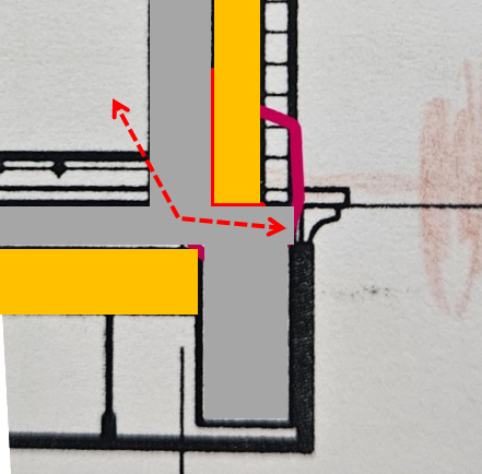 만약 이 형태를 유지해야 한다면, 단열보다는.. 아래 표시된 곳에 도막방수를 하는 것이 좋습니다. 고질적인 누수의 원인 부위거든요.