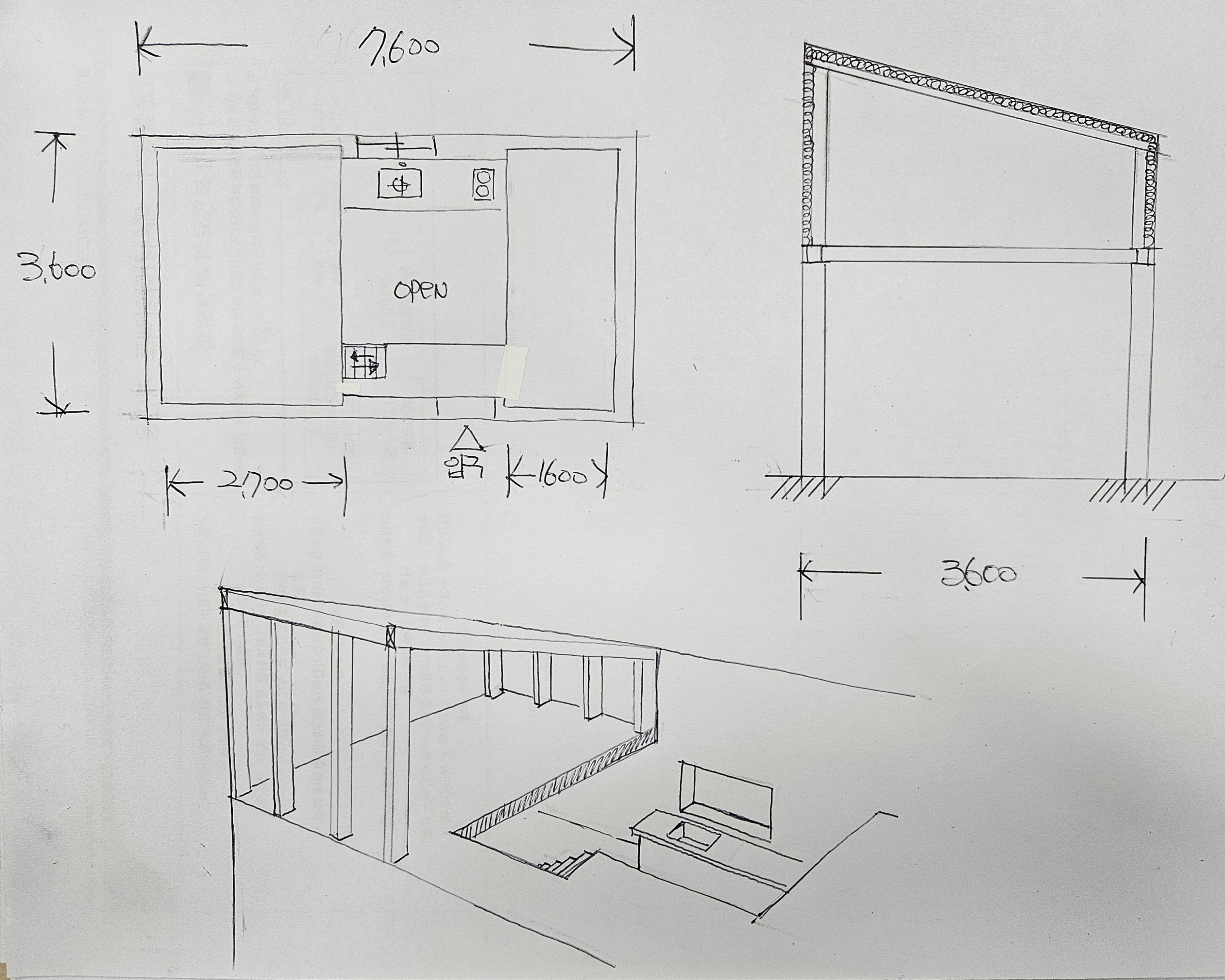 * 높이 2600 까지는 ALC 조적 이며 이후 상부(위 그림과 같이) 지붕 부터 목구조 마감 하려고 합니다
