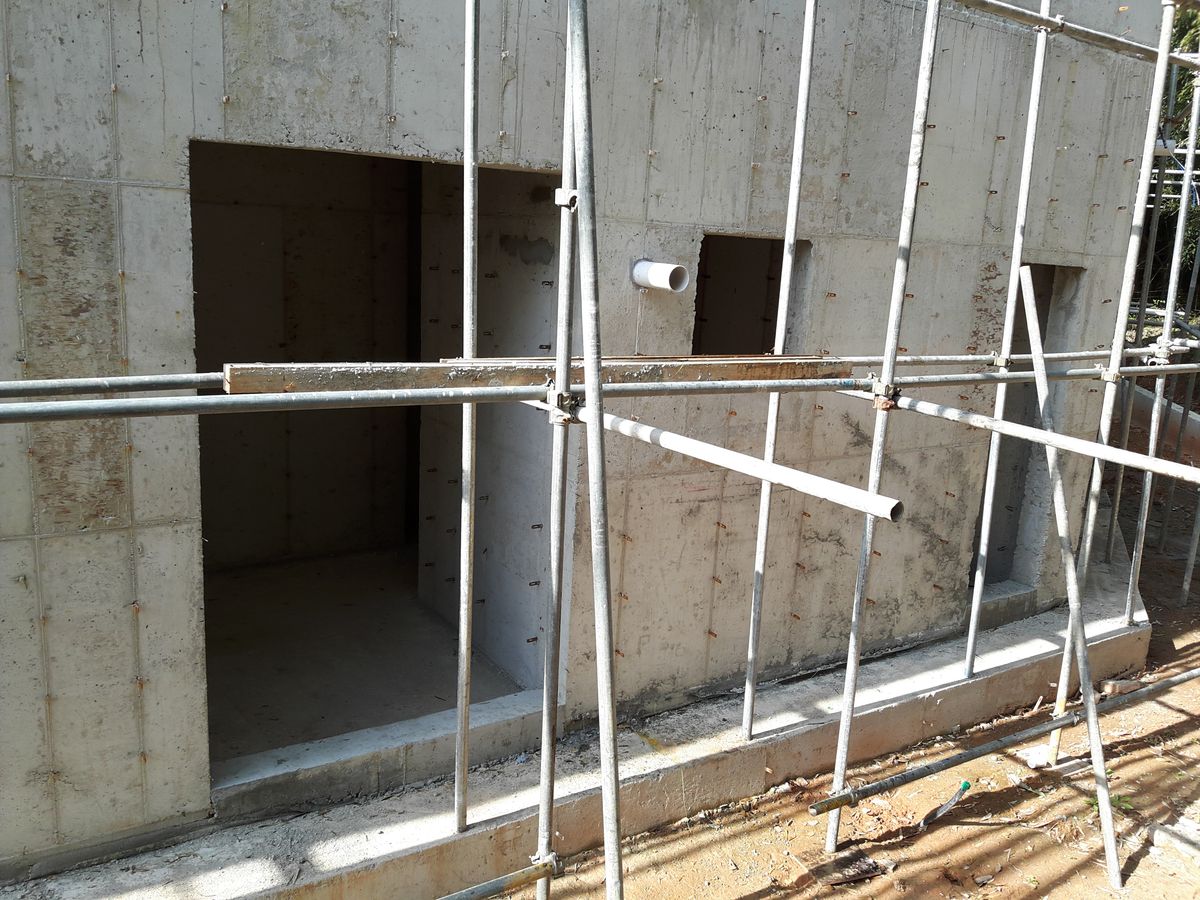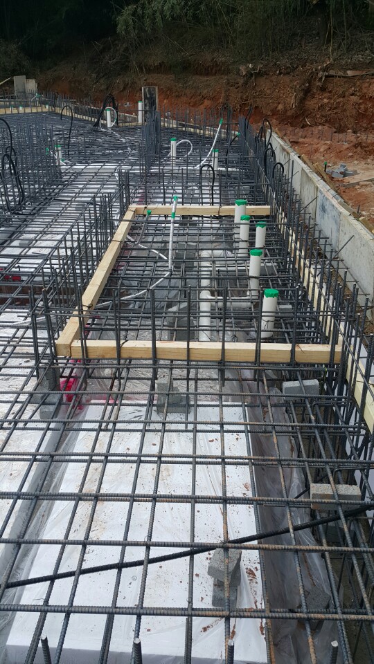 같은 레벨에 기초와 골조가 올라갔습니다. 골조안에 방통(기초>기포>은박지>몰탈)이 약 20cm높게 쳐져 있어 현재 기초부분과는 차이가 있습니다.