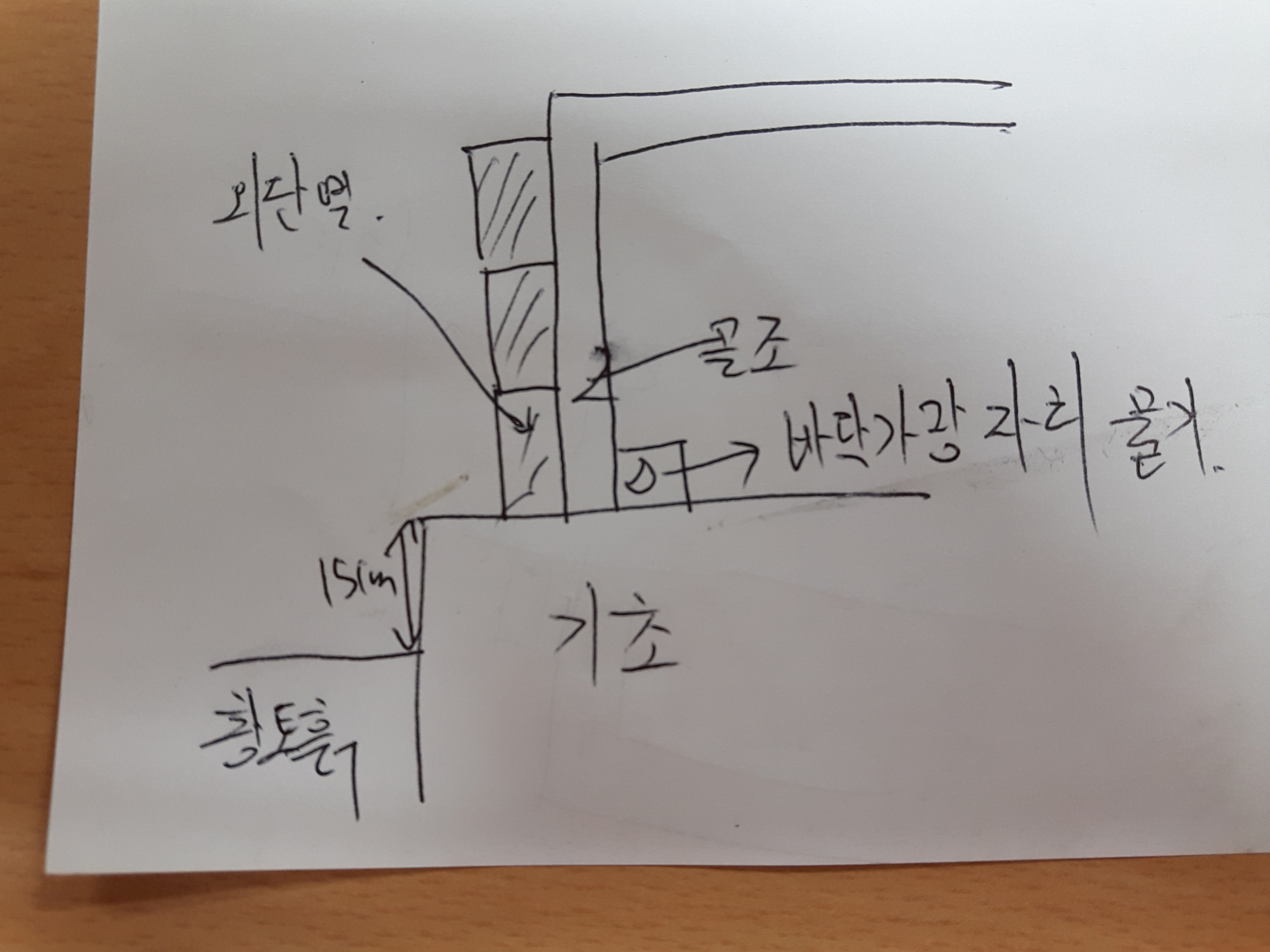 일단 기초의 외부 레벨과 실내바닥의 레벨이 같은 것 자체도 잘못된 방법입니다.