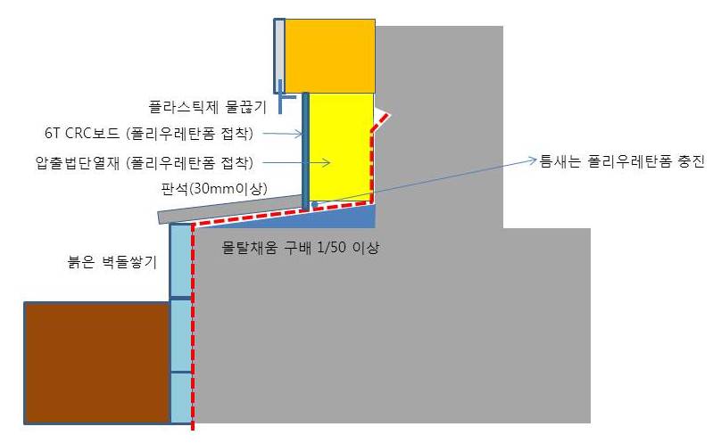 하지만 확실 한 것은 외부의 높이와 실내 슬라브 높이가 같은 것이.. 두고 두고 문제를 일으킬 가능성이 매우 높다는 것입니다.
