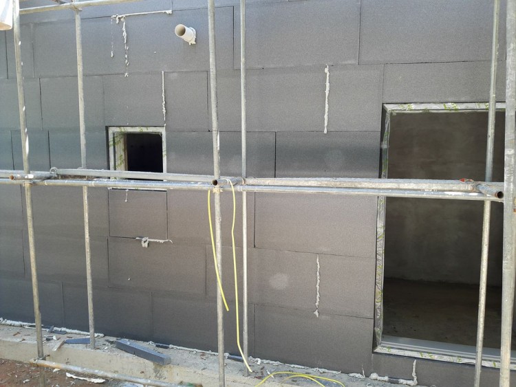 콘크리트 바닥부터 흙의 상부 15~30cm까지 외단열을 절단하여 잘라내야 합니다.