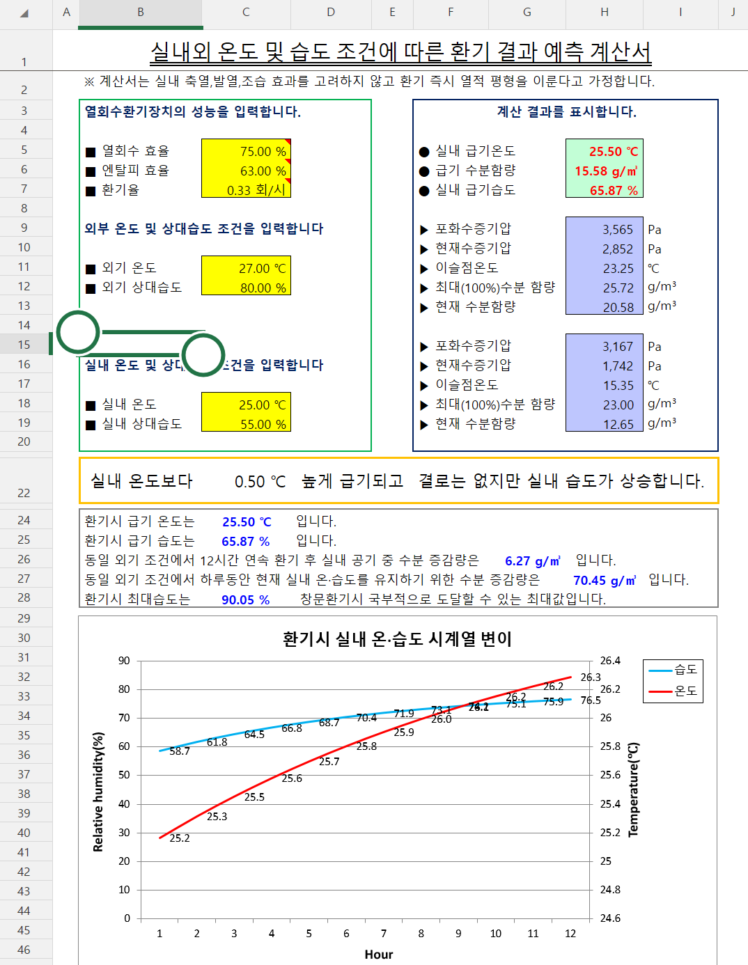 습도 분석은 온도와 습도를 같이 고러하여야 하고 환기장치의 성능도 열회수효율 엔탈피효율을 알아야 합니다.
