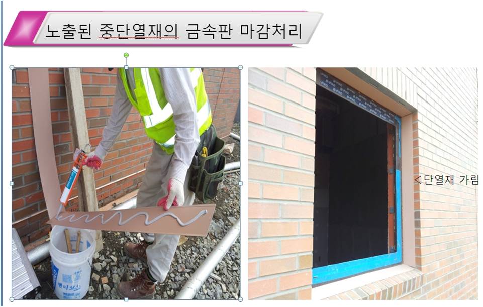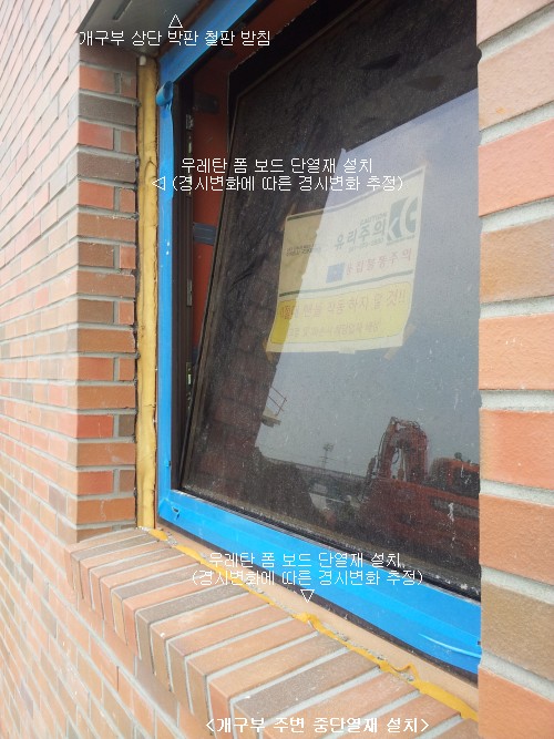 이러한 과정을 거쳐서 중단열 개구부에 인접한 단열재 처리를 마치게 됩니다.