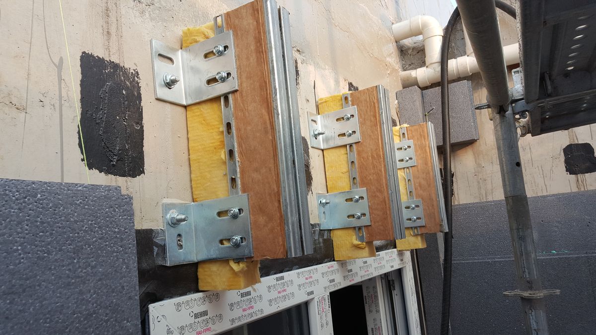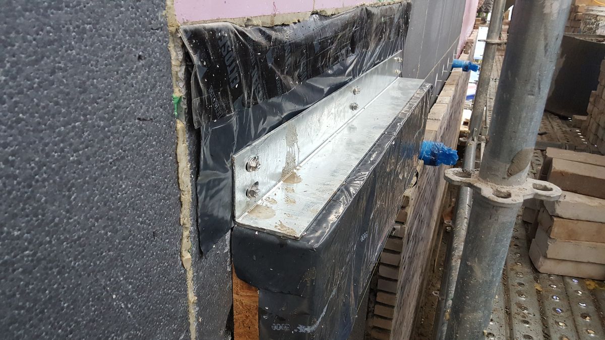 이전 즉, 2009년도에는 위에다가 두께 5~10mm정도의 강재 인방을 벽에 고정하고 그 위에 치장벽돌을 쌓았었는데 그 부위에서 열교가 발생했기 때문에 아래와 같이 개선시킨 것으로 보여 졌습니다.