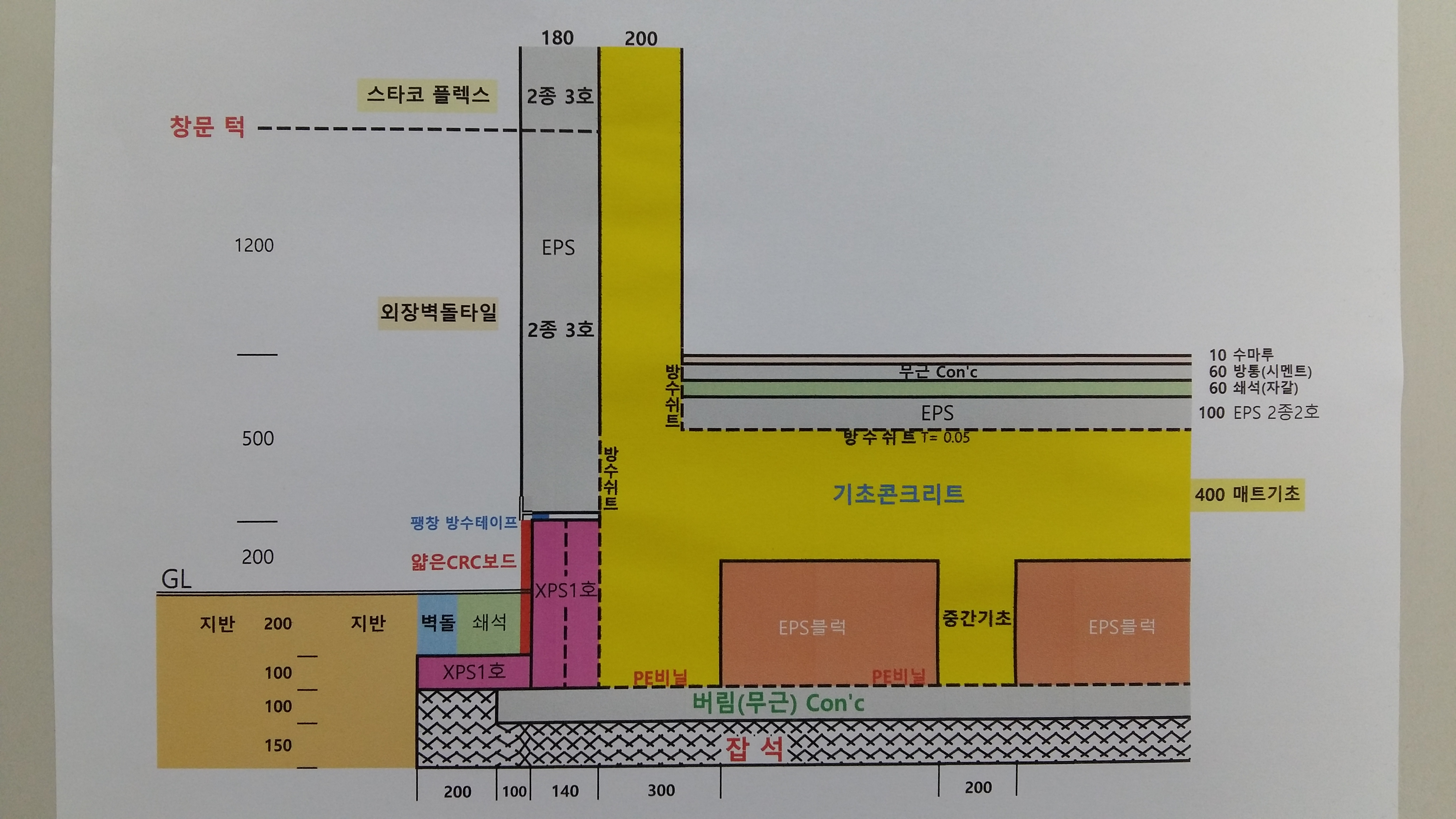 기초하부 XPS 200높이는 벽돌타일 대신 시멘트사이딩이나 CRC보드로 대체하는것으로 하겠습니다.
