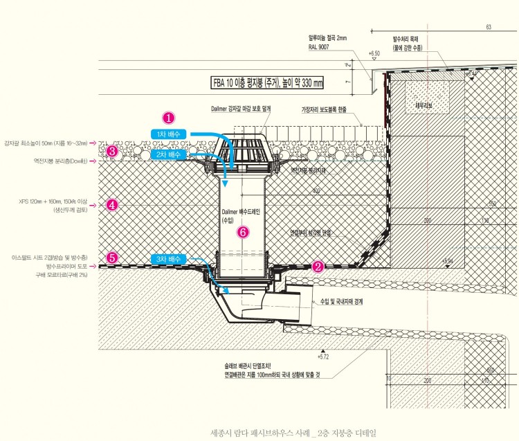 아래사진은 손태청님,홍도영님께서 공개해주신 역전지붕의 3중 루프드레인 상세도인데요.