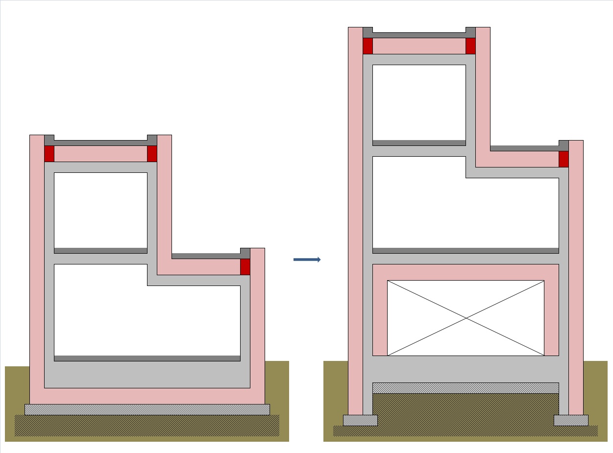 1층 주차장(?)의 경우 올려 주신 것처럼 해도 되지만, 아래와 같이 하는 것이 좀 더 경제적인 방법입니다. 1층 벽량을 줄이는 방법도 있는데.. 일단 현재로써는 개념을 잡는 단계라서 이 정도의 틀만 가져가시면 큰 오류없이 잘 진행될 수 있을 것 같습니다.