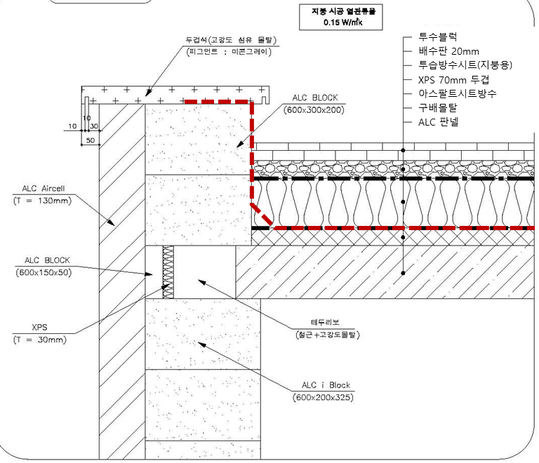 08.ALC Aircell 130mm으로 구성되어 지며, 열관류율은 0,147W/m2k으로 되어 있습니다.