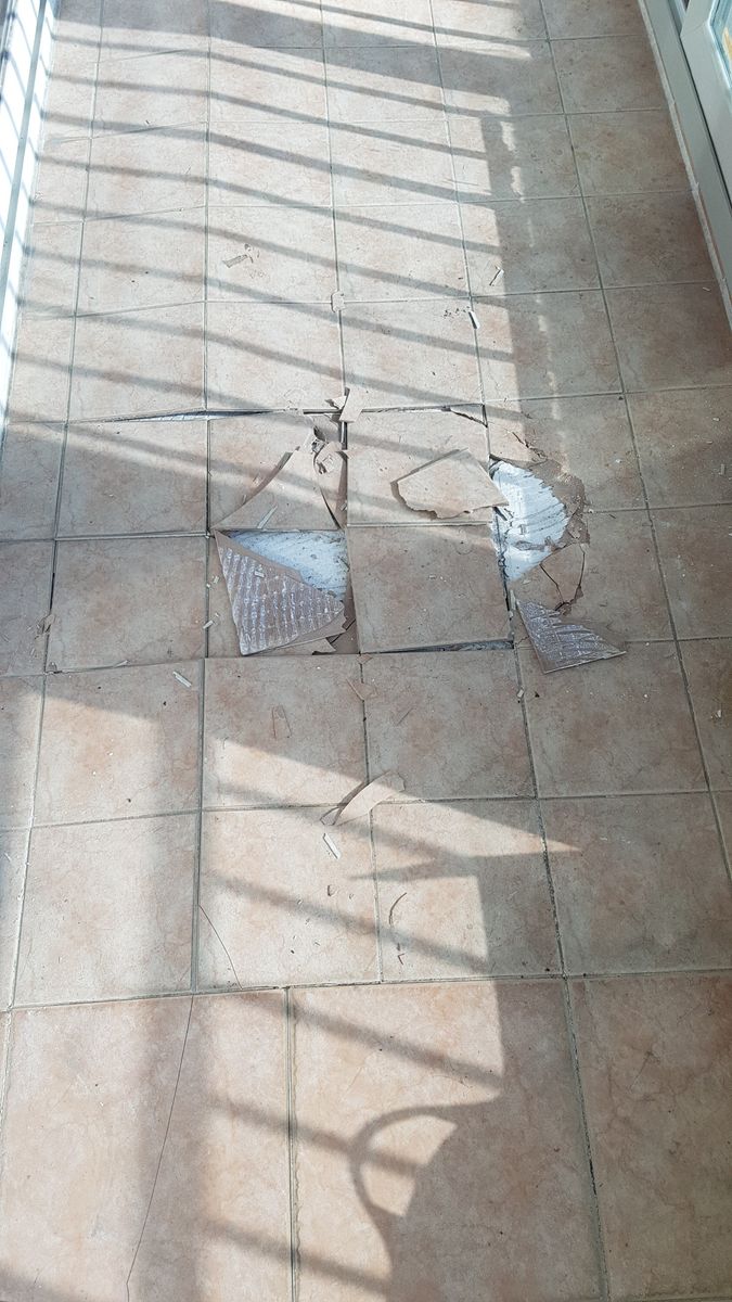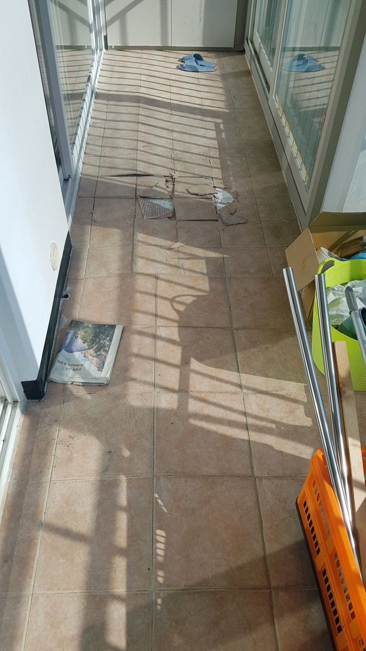 어제 빨래 널면서도 문제 없던 베란다 타일이 오늘 일어나보니 깨져 있습니다.