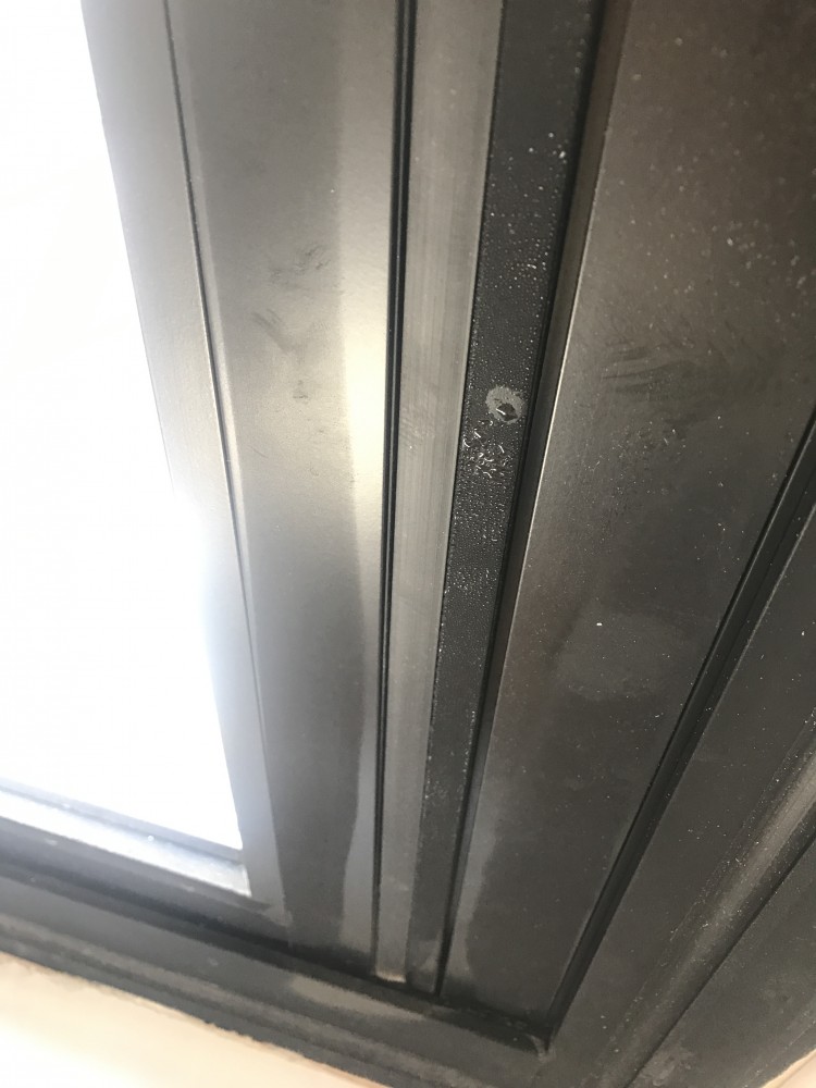 업자랑 같이확인해본 결과 유리결로가 아닌 프레임결로, 창틀결로라는 결론을 지었고 방법을 찾다가 AS팀에서 3창중 가운데 폴딩으로 시공한 부분 프레임에 구멍을 뚫어 폼제를 채워보고 경과를 지켜보자했습니다