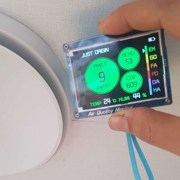 초미세먼지(PM2.5)->23mg/m3 , 포름알데히드(HCHO)->2mg/m3, 이산화탄소(CO2 )->429ppm