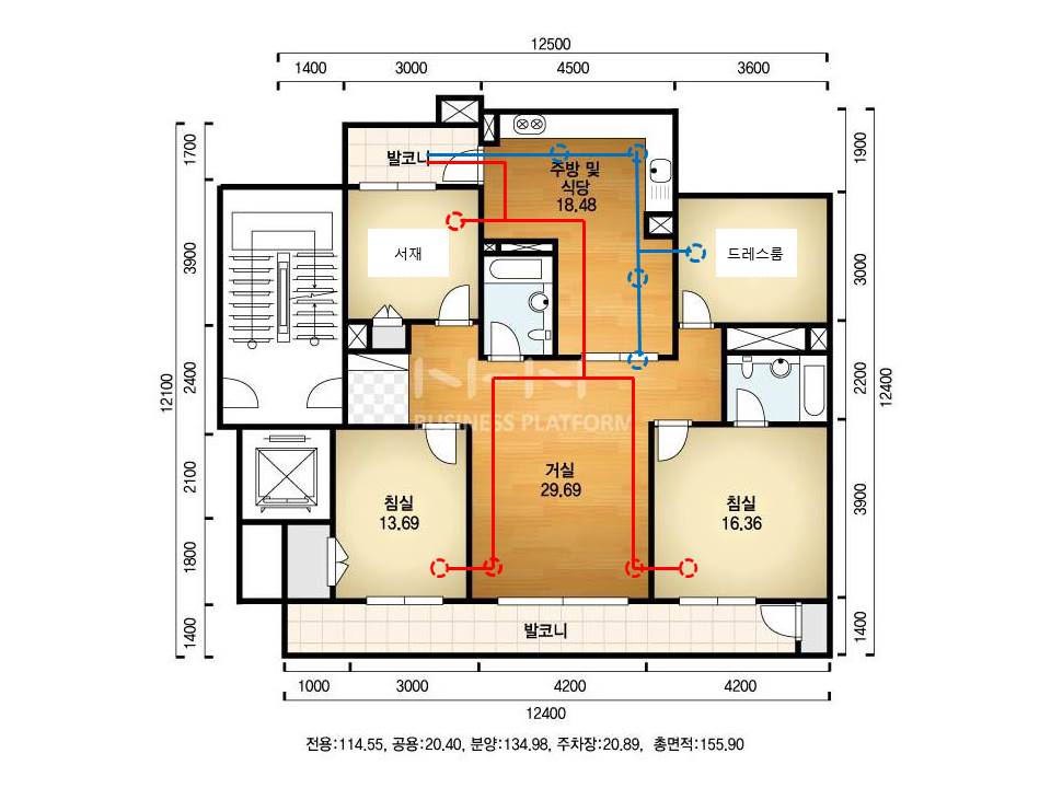 분배기가 있다면 분배기로 부터 각 방에 선이 하나씩 별도로 형성된다는 의미거든요.