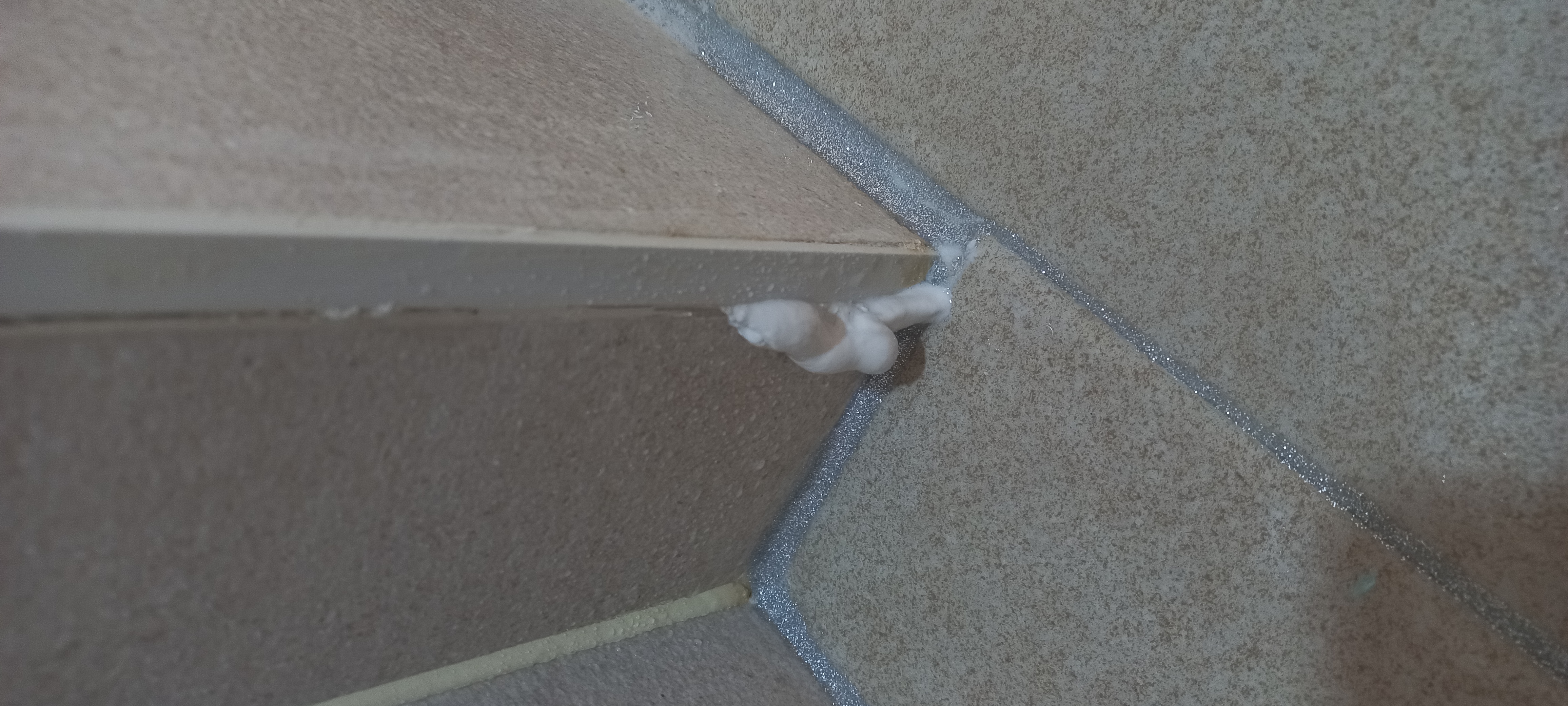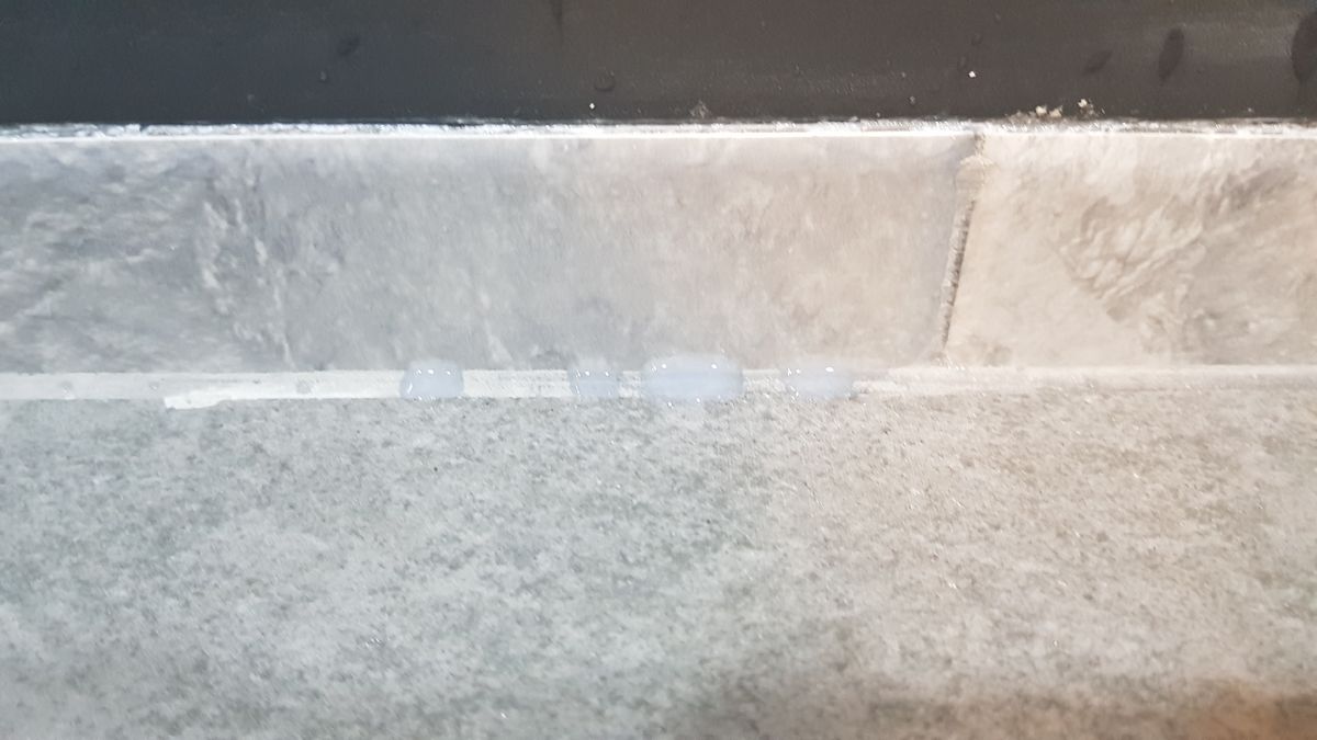 일단 줄눈을 모두 제거한 후 후면을 건조시키는 것이 우선이 것 같습니다.