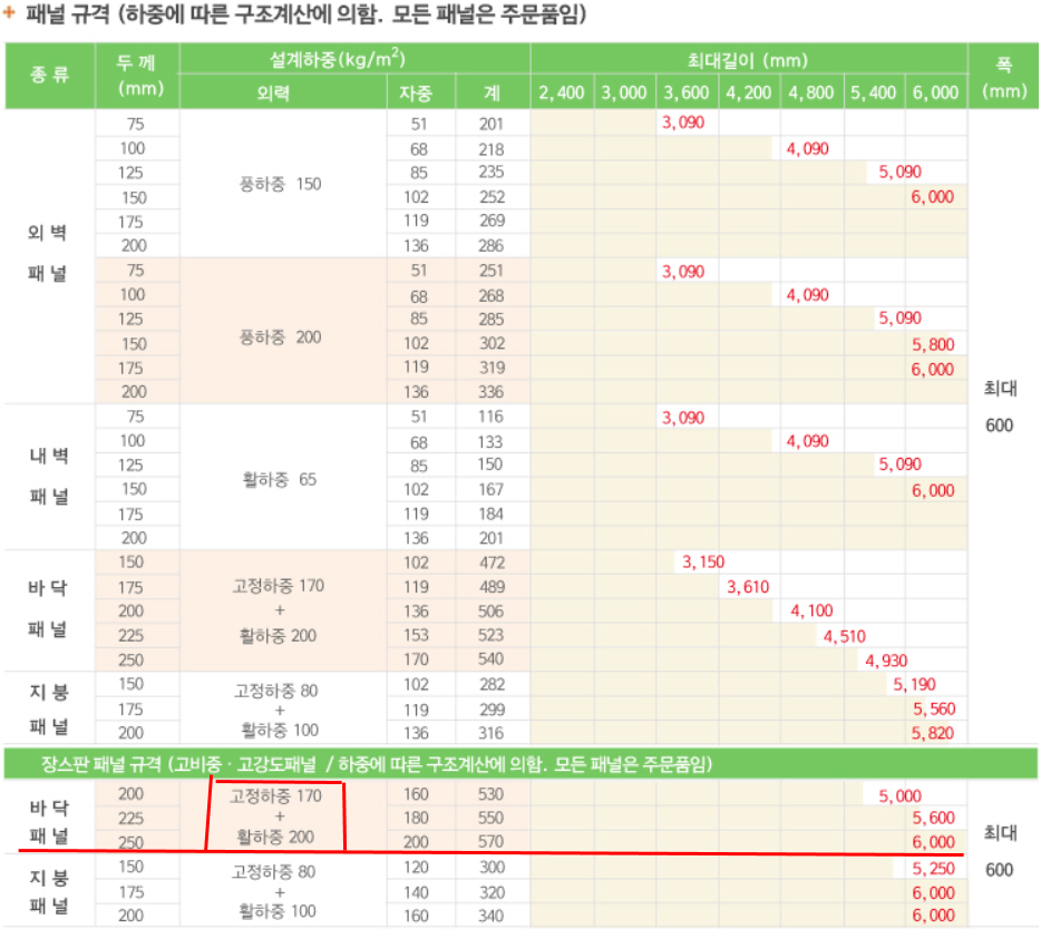 그래서 지붕용이 아닌 ALC 250T 바닥패널로 구성 했습니다