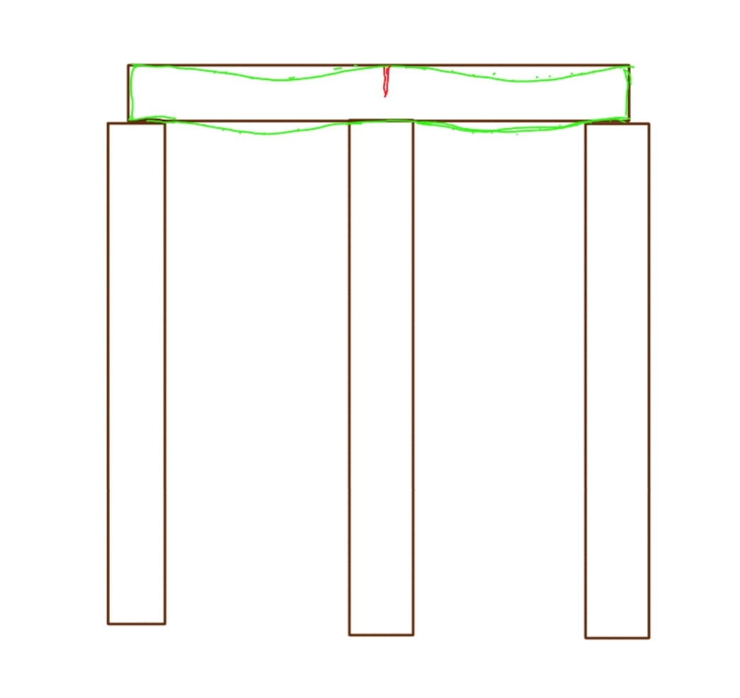 초록색처럼(과도한처짐 표현) 처짐이 발생할때 가운데 벽이 양쪽 벽보다 조금 더 높거나 같을때 빨간색 부분이 균열이 간다는 것으로 이해 하고 표현 한건데 표현력이 부족해서 ㅎㅎㅎ