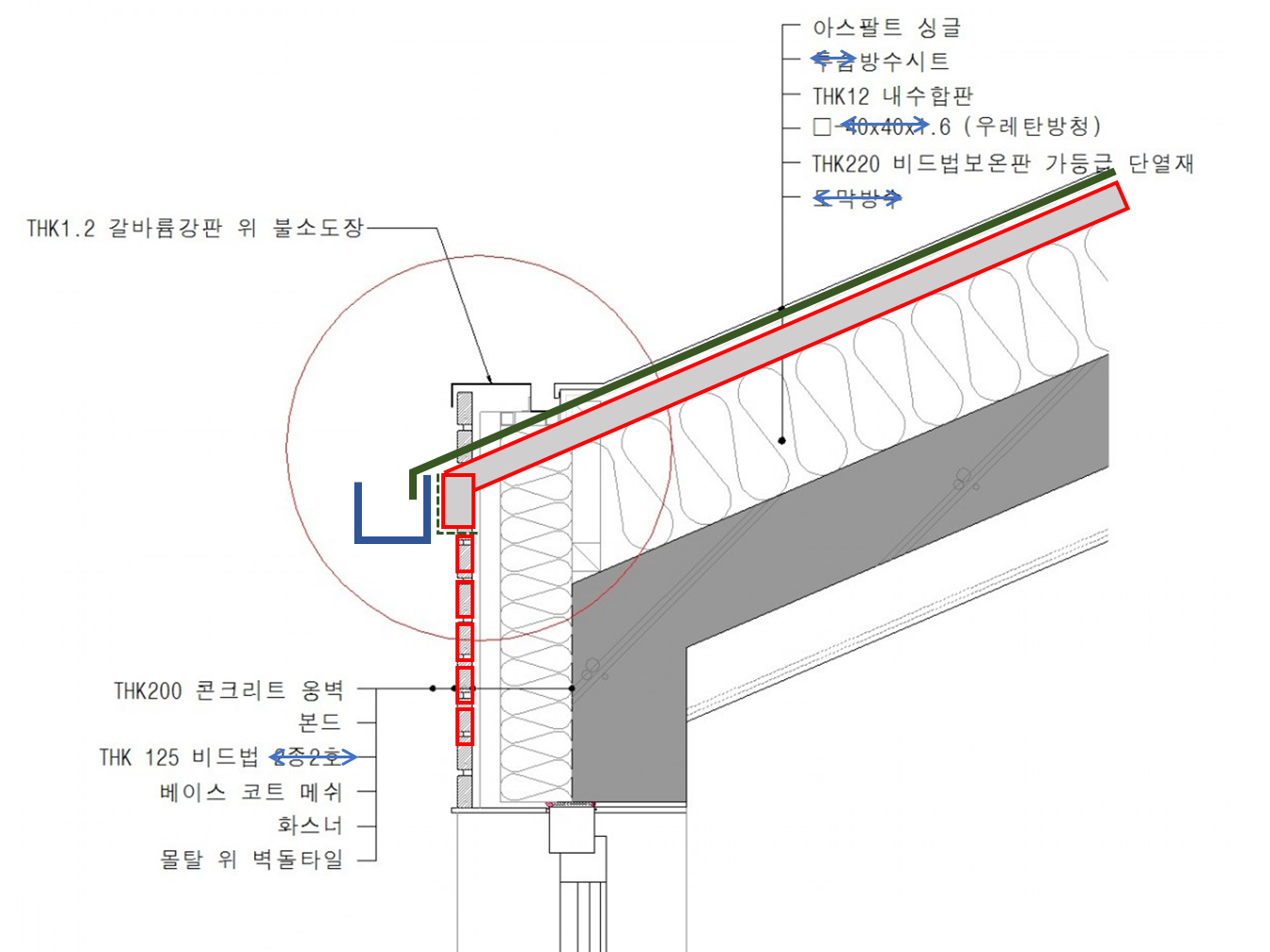현재 저희 처마측 상세도 인데 하단부는 화스너로다 골조에 고정이 되지만