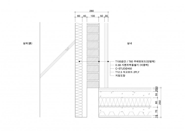 그리고, 이 모든 것을 떠나서 "경질우레탄보드"는 "압출법단열재"로 변경되어야 합니다. 경질우레탄보드의 경우 흡수율이 있어서 지금과 같은 위치에 사용되기가 적당하지 않기 때문입니다.