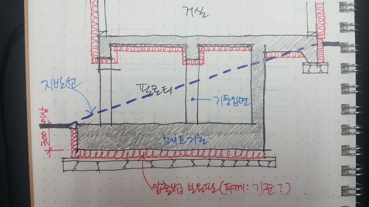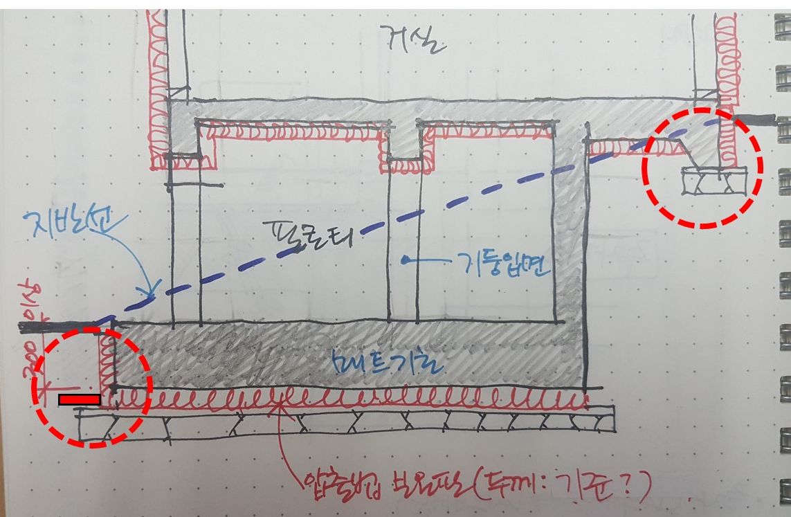 그러므로 일단은 기초 위에 단열재를 올리는 것은 설계에 반영하지 마시고 진행을 하시어요.