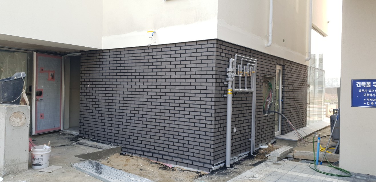 벽돌타일 중에 코너 타일을 사용하시면 외관상 벽돌을 쌓는것과 큰 차이 없이 시공이 가능합니다.