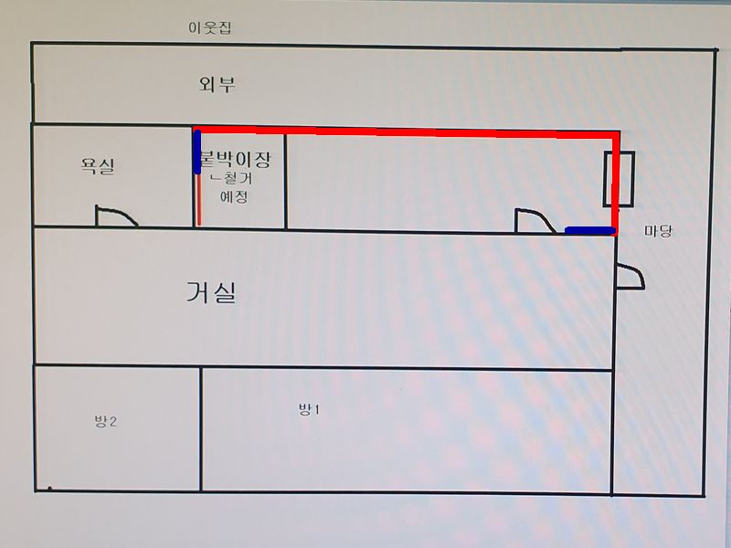 붙박이장 뒤는 가장 취약한 부위로 철거하고 시공해야합니다.