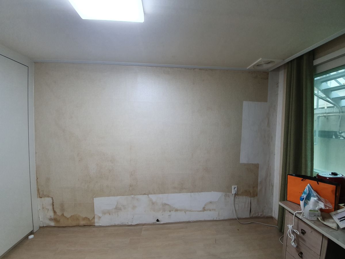 그 부분 때문에 장판에 맞닿는 벽지가 젖고 곰팡이가 핀 것 같습니다.