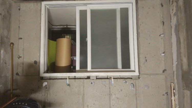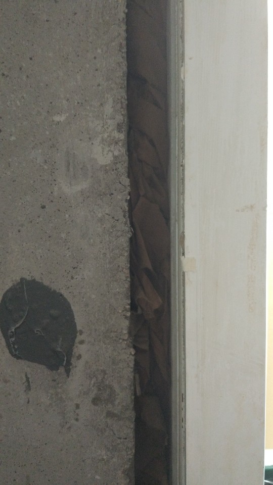 창틀 사이로 좌우 및 상단은 약 3cm, 하단은 벽돌 하나의 공간이 있습니다.