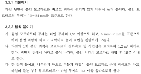 떠붙임 공법의 경우, 타일 뒷면 몰탈이 채워지지 않은 공극이 존재하는 걸 어느 정도 비율 까지는 허용하는 공법인것인가요?