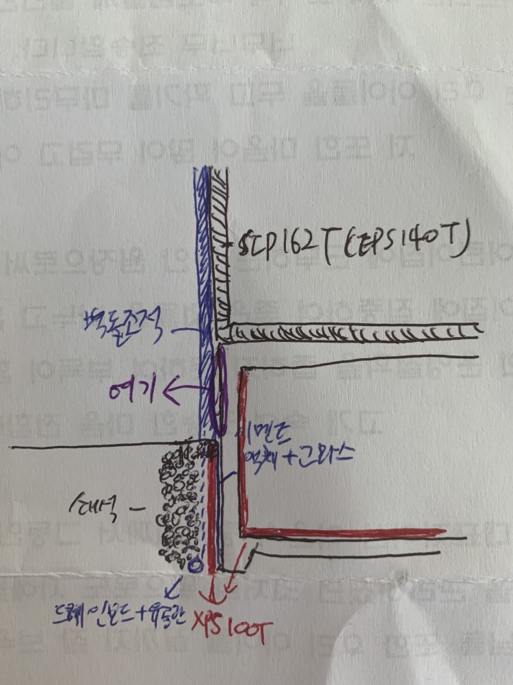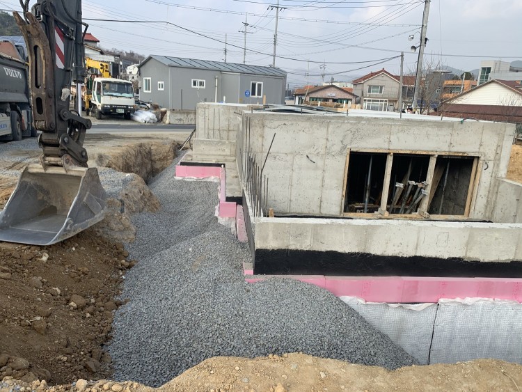 1. 지하층 단열재를 덮은 배수판이 앞뒤가 바뀌었습니다. 부직포가 붙은 면이 단열재 쪽으로 가야 합니다. 유사하게 적용하실 분은 유의하시어요.