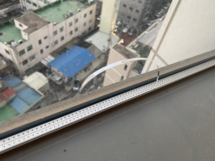 상태 : 유리하단 중앙의 실리콘 안쪽부터 크렉 발생
