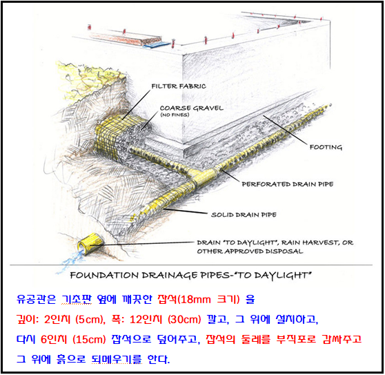 1. 해당 그림의 본문에도 있지만, 토질에 따라 유공관은 필요하지 않습니다. 마사토 지질이 그러합니다.