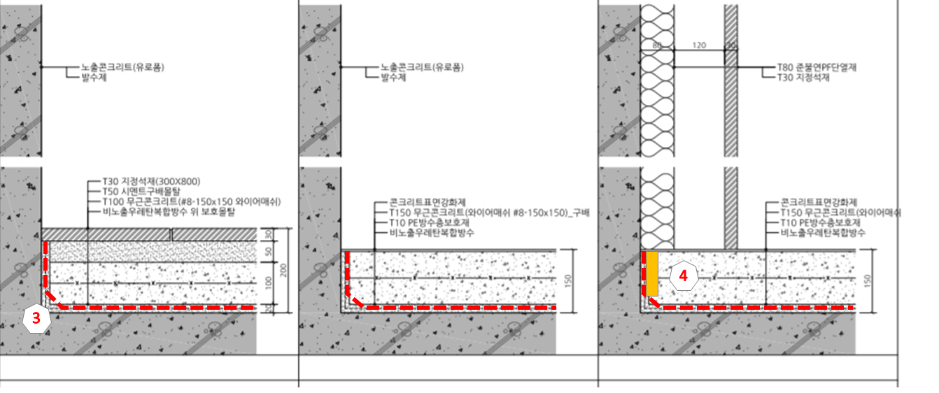 4. 여기도 방수층과 무근층 사이에 완충재가 개입되는 것이 좋겠습니다.