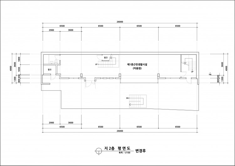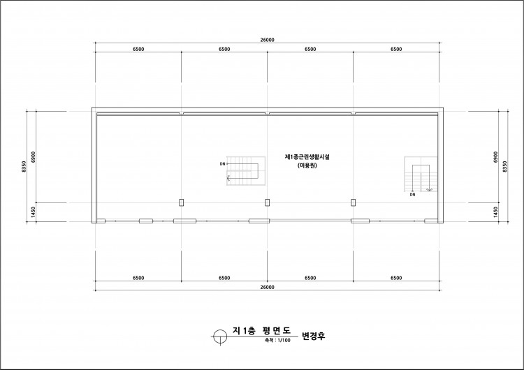 지하1,지하2층 근린생활시설이며 2개층모두 4면중 3면만 지하, 1면은 외부와 면하고 있습니다.