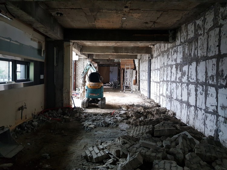 기존에는 옹벽에 비드법50mm 접착후, 기둥제외 벽만만 시멘트벽돌 이중벽 되어있었는데 상태가 너무 안좋아서 철거후 재시공 하는 것입니다.