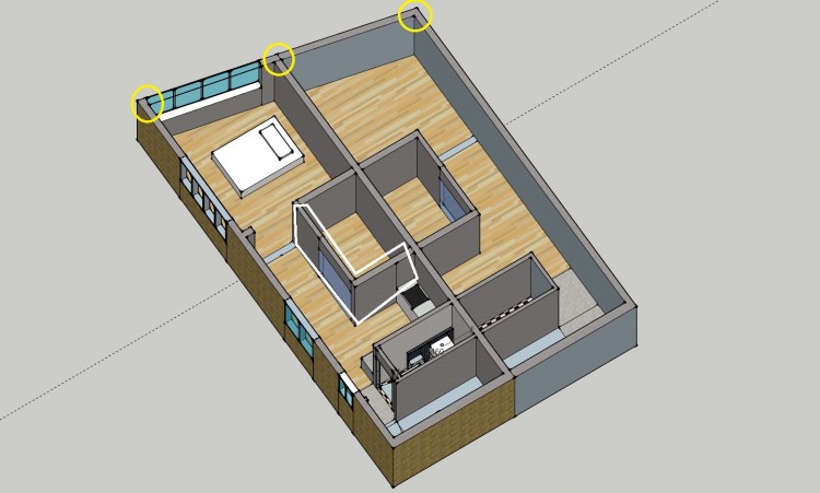 기둥은 전면 노란색 동그라미 부분에 3개가 있고 그 이외에는 안 보이는것(?) 같습니다
