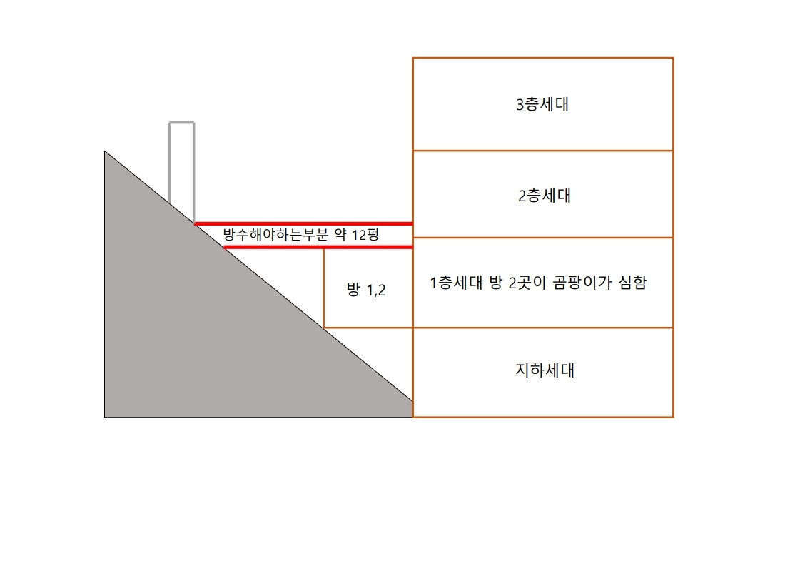 원래 같으면 레미탈을 붓고 우레탄 방수를 하겠지만 이 집은 하자가 너무 많아 올해만 해도 7번은 왔다갔다 한 집이라 정말 제대로 해주고싶습니다. 1층세대의경우 온집안이 곰팡이천지입니다.