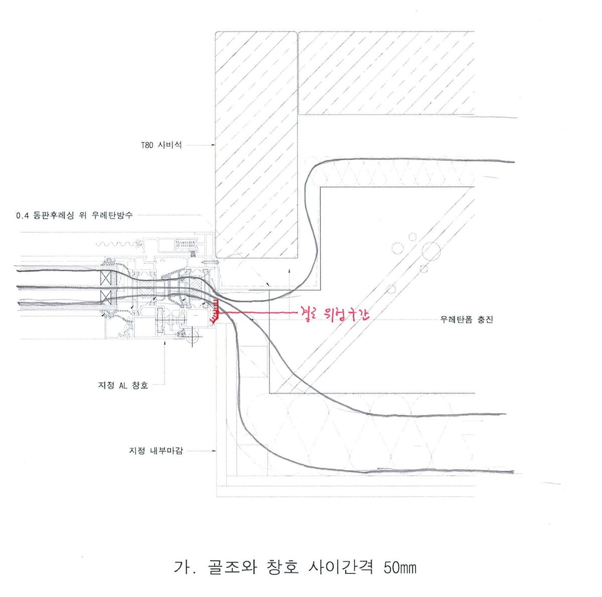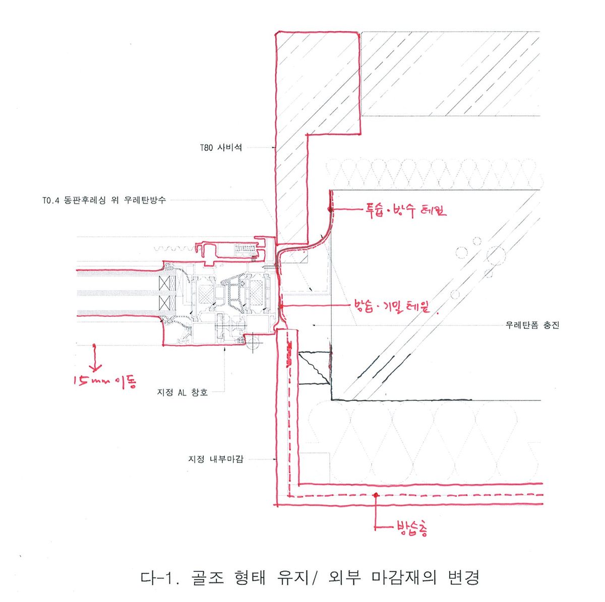이론적으로는 네번째 위치에서 디테일을 개선하는 것이 가장 좋습니다만, 시공성이 너무 떨어지고, 자칫 큰 하자로 이어질 수도 있어 세번째 위치에서 보완을 하는 것이 좋다는 결론입니다.
