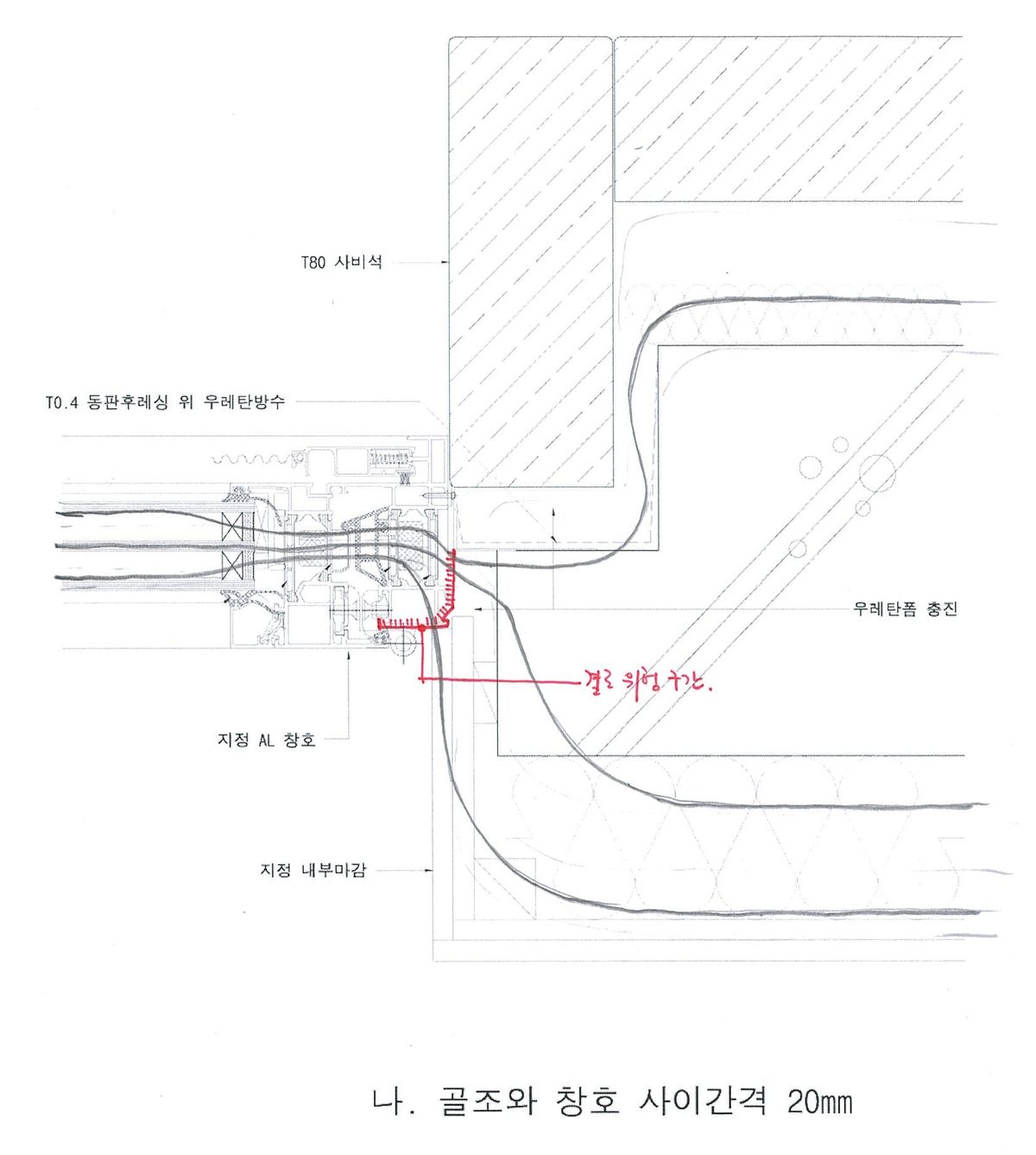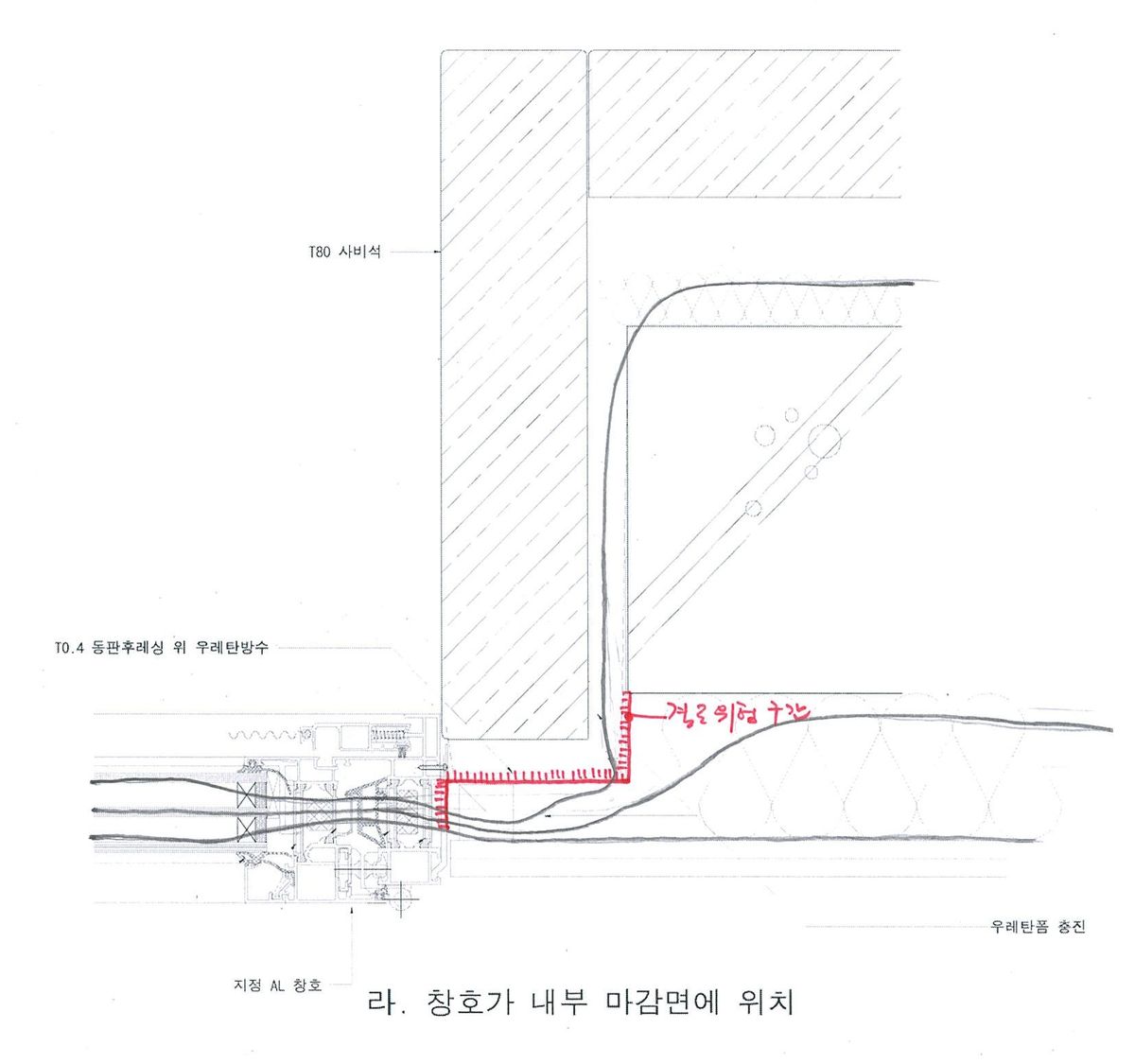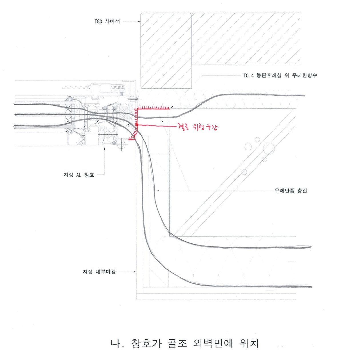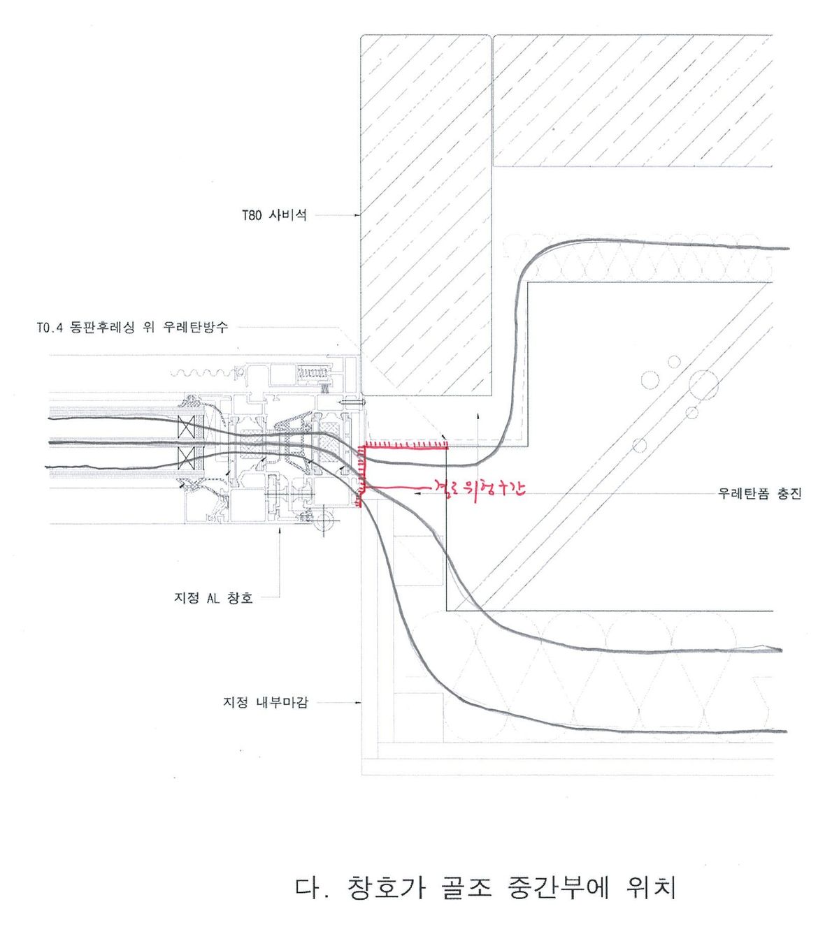 그래서 창호 설치 위치, 창호와 골조 사이의 단열처리의 방법으로 고민을 하다 이렇게 질의를 합니다.