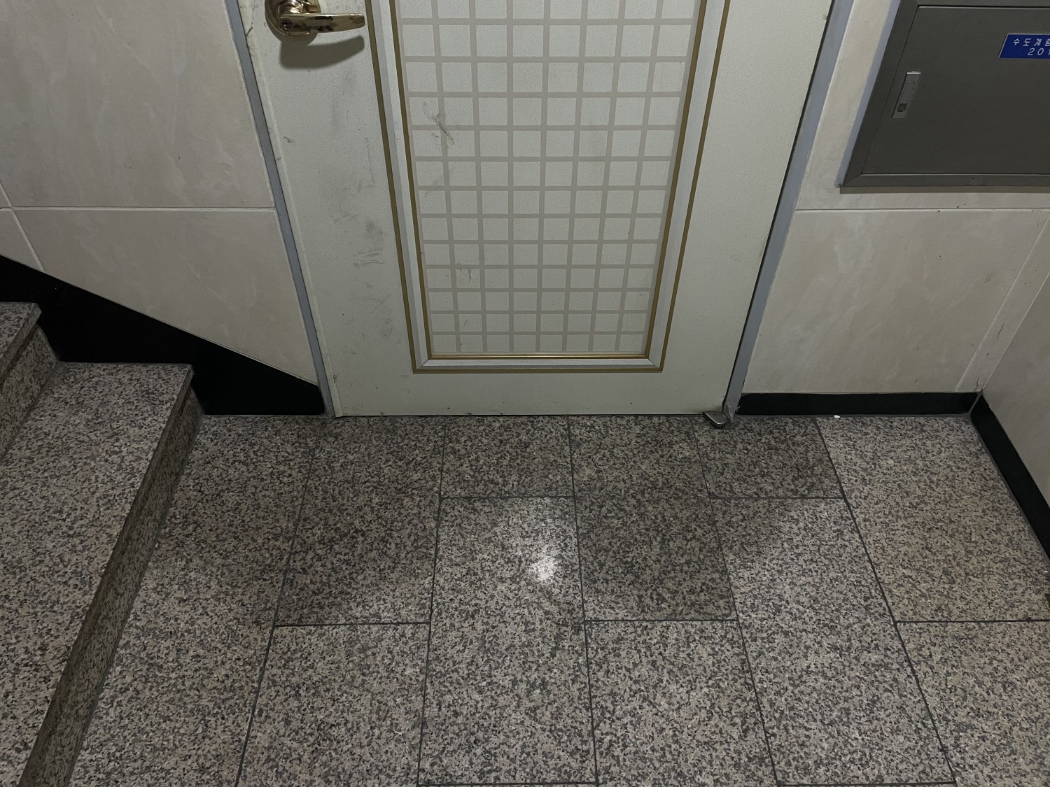 며칠전주터 이렇게 저희 집앞 타일이 젖어 있더라고요