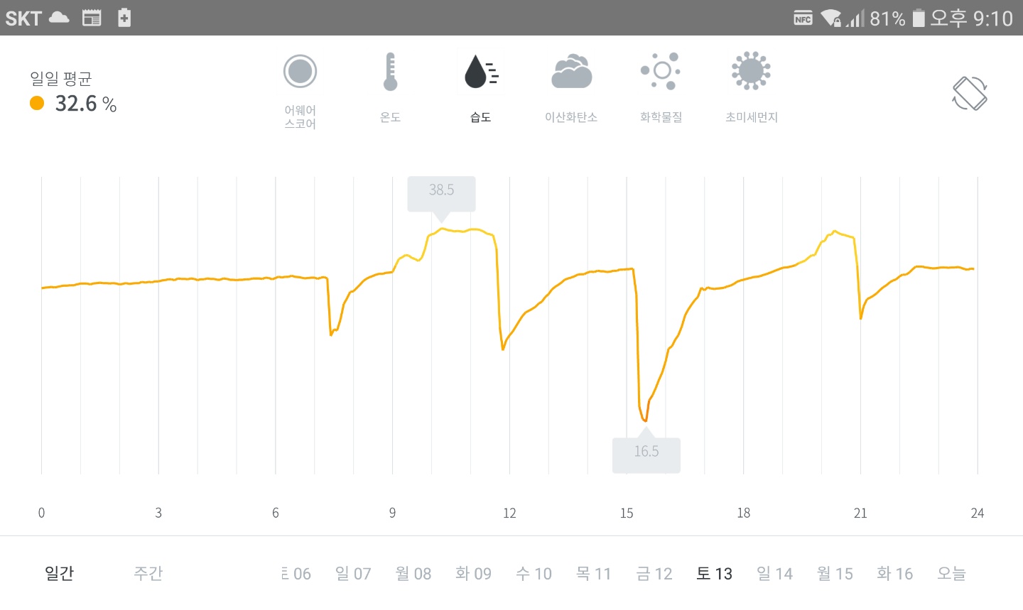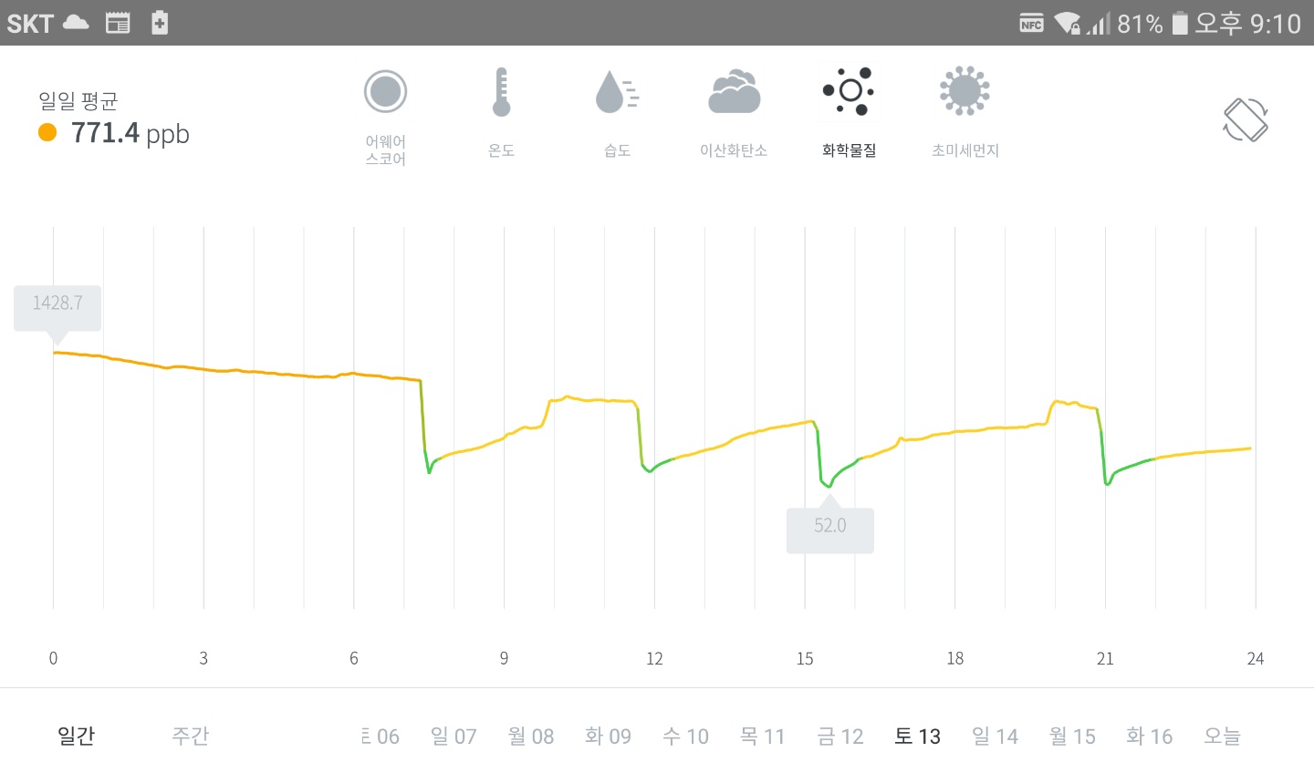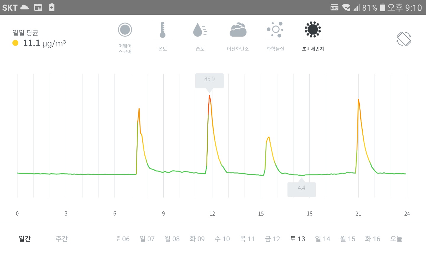 초미세먼지가 자연환기를 시킬때 마다 튀는 것을 볼 수 있습니다.