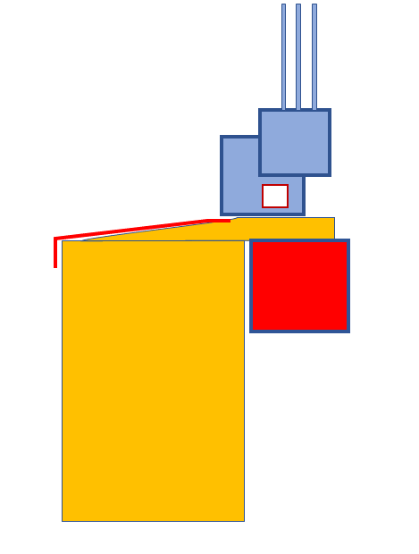 노란색은 단열재, 붉은색은 철골, 파란색은 창호로 보이는데 빨간 테두리의 흰 사각형은 뭔가요??
