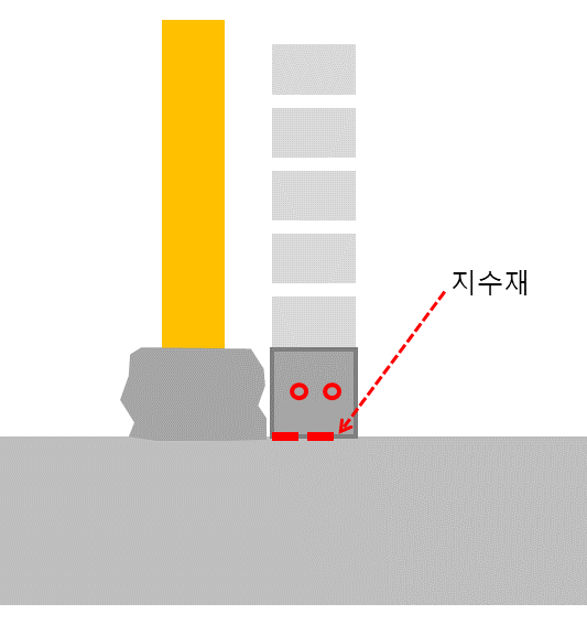 그래서 제가 그린 그림을 자세히 보시면, 기존 주춧돌 앞쪽에 콘크리트로 턱을 만들어 준 것이거든요.