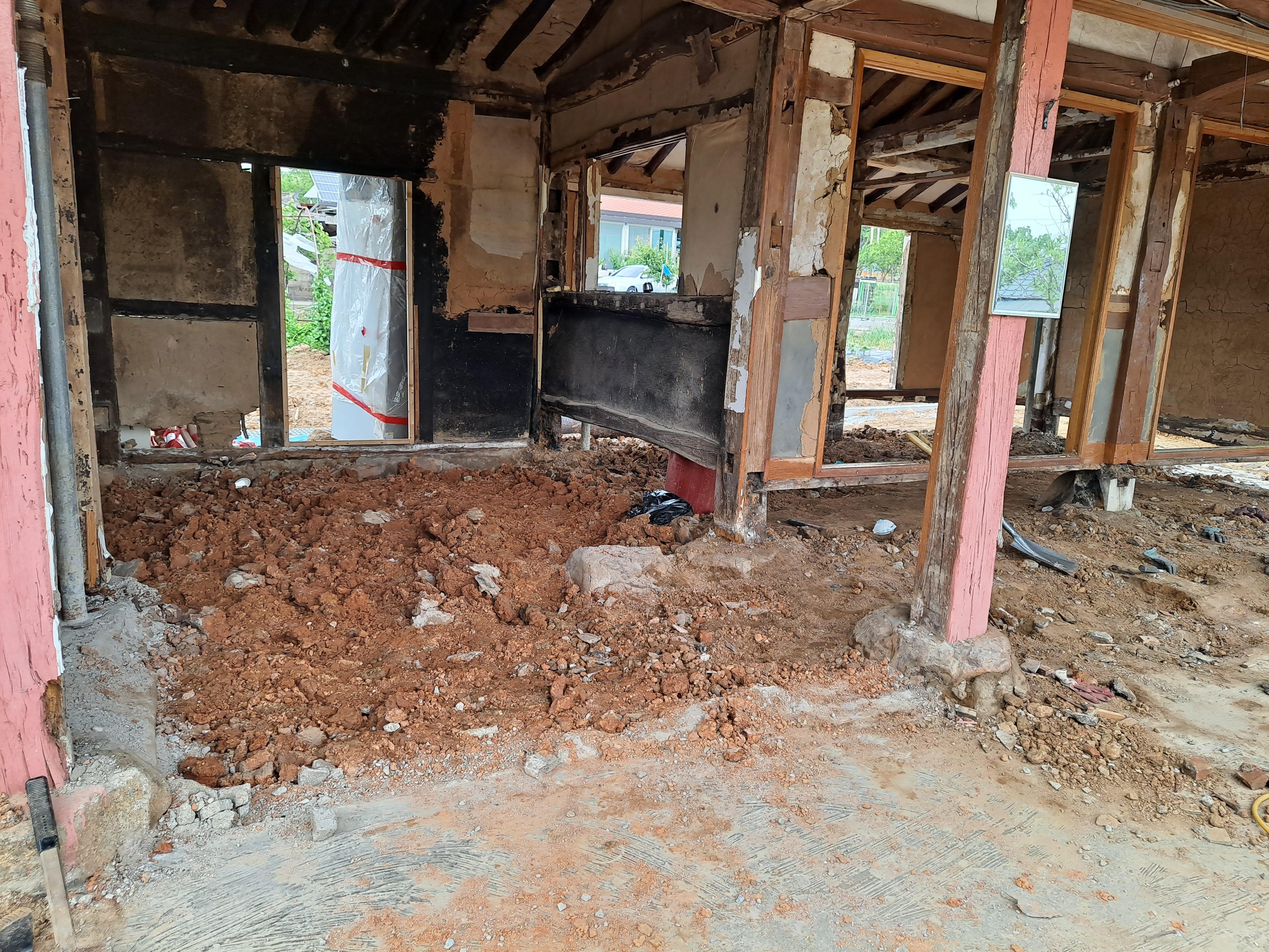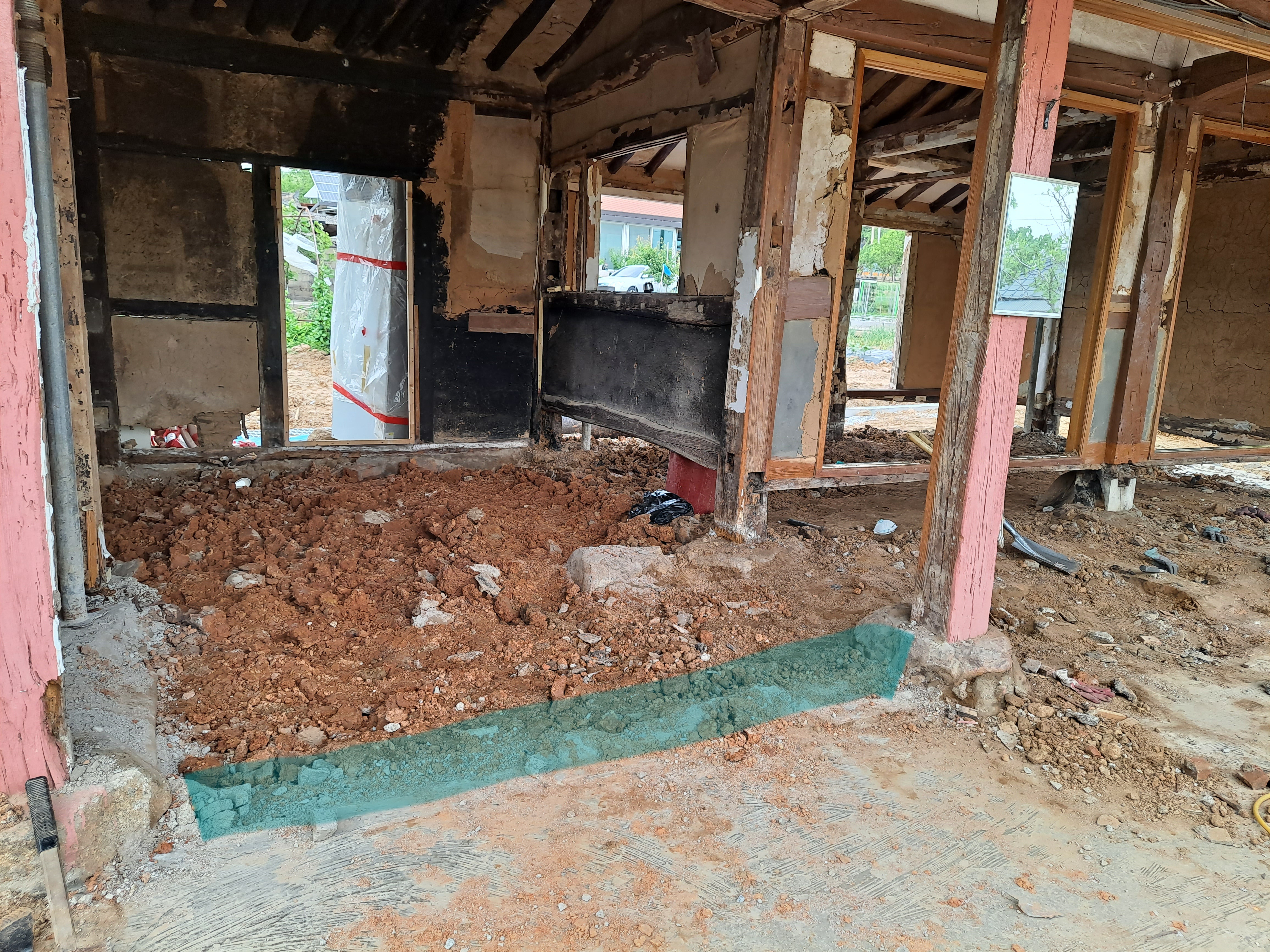 기초가 주변길이나 뒤밭보다 비슷하거나 낮아서 배수공사와 유공관설비를했습니다 이제 집을 수리할 차례인데 이 시기에 협회를 알게되서 정말 다행이네요