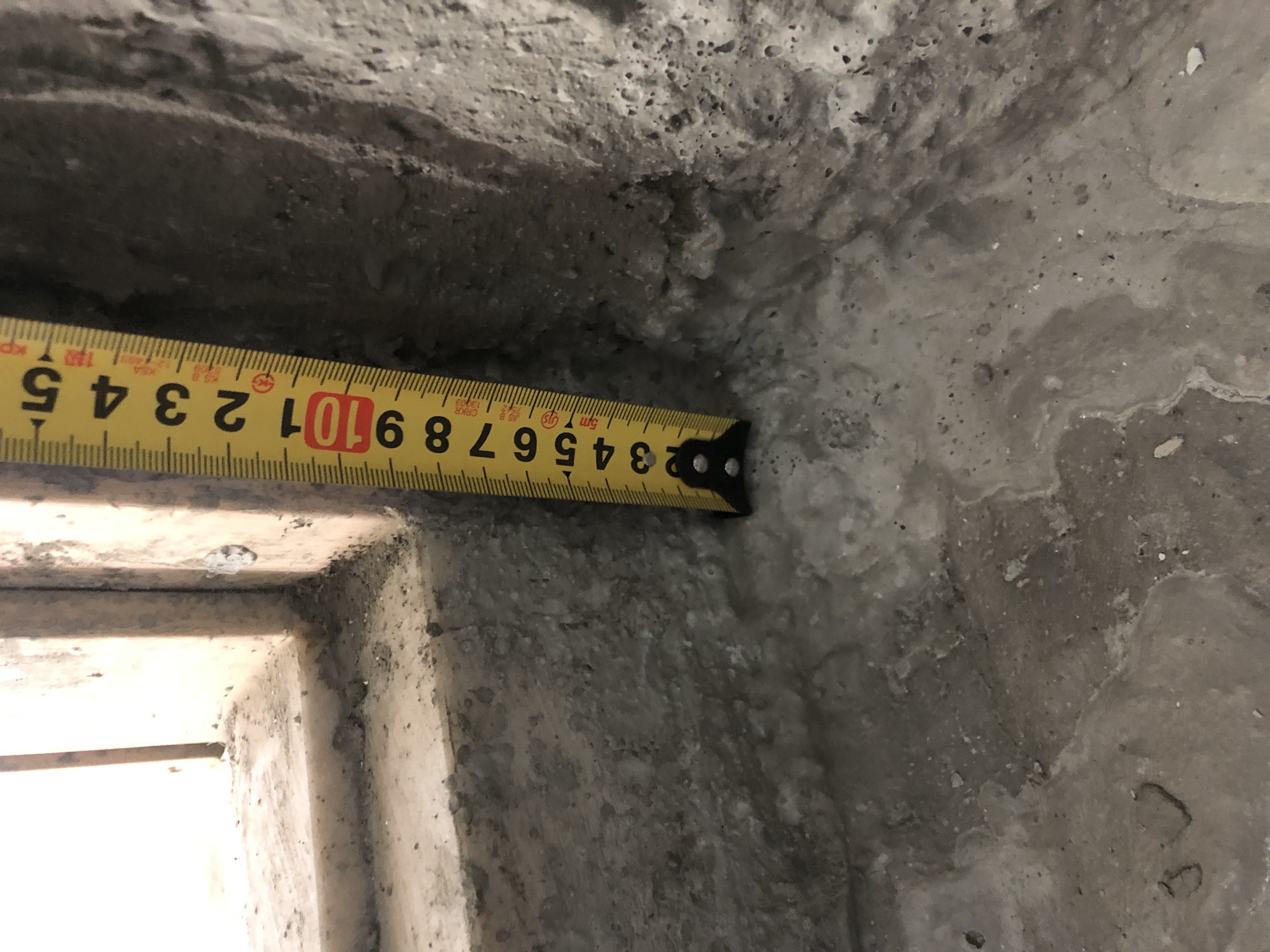 문턱 쪽 오른쪽 모서리 높이 입니다. 액방이 뭉쳐 있어서 벽 타일과 만나려면